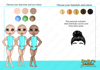 three different skin tones, three eye colours and five hair colours)