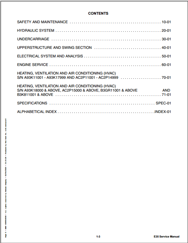 2017 Bobcat E35 Compact Excavator Service Manual Part No. 6987276enUS (02-17)