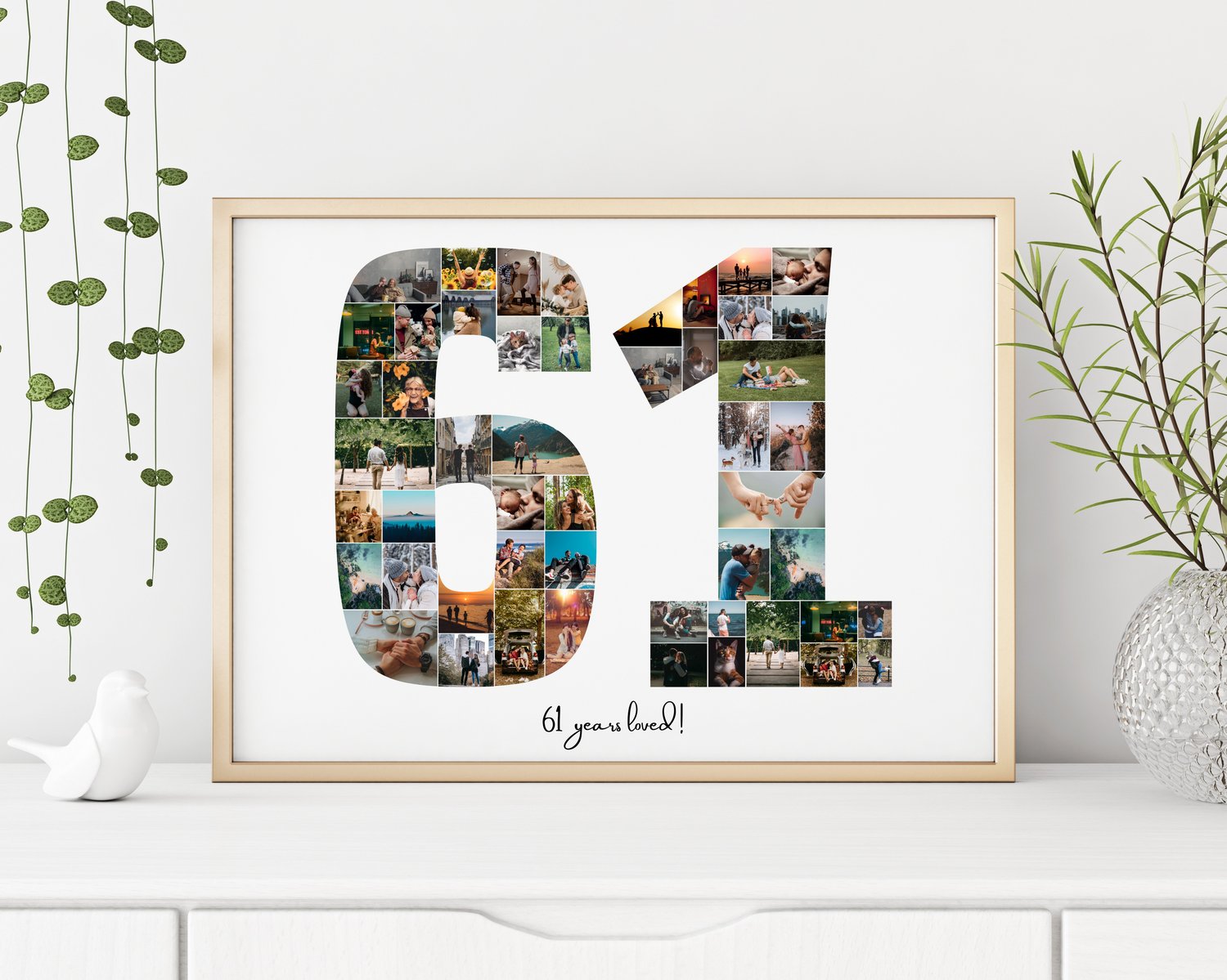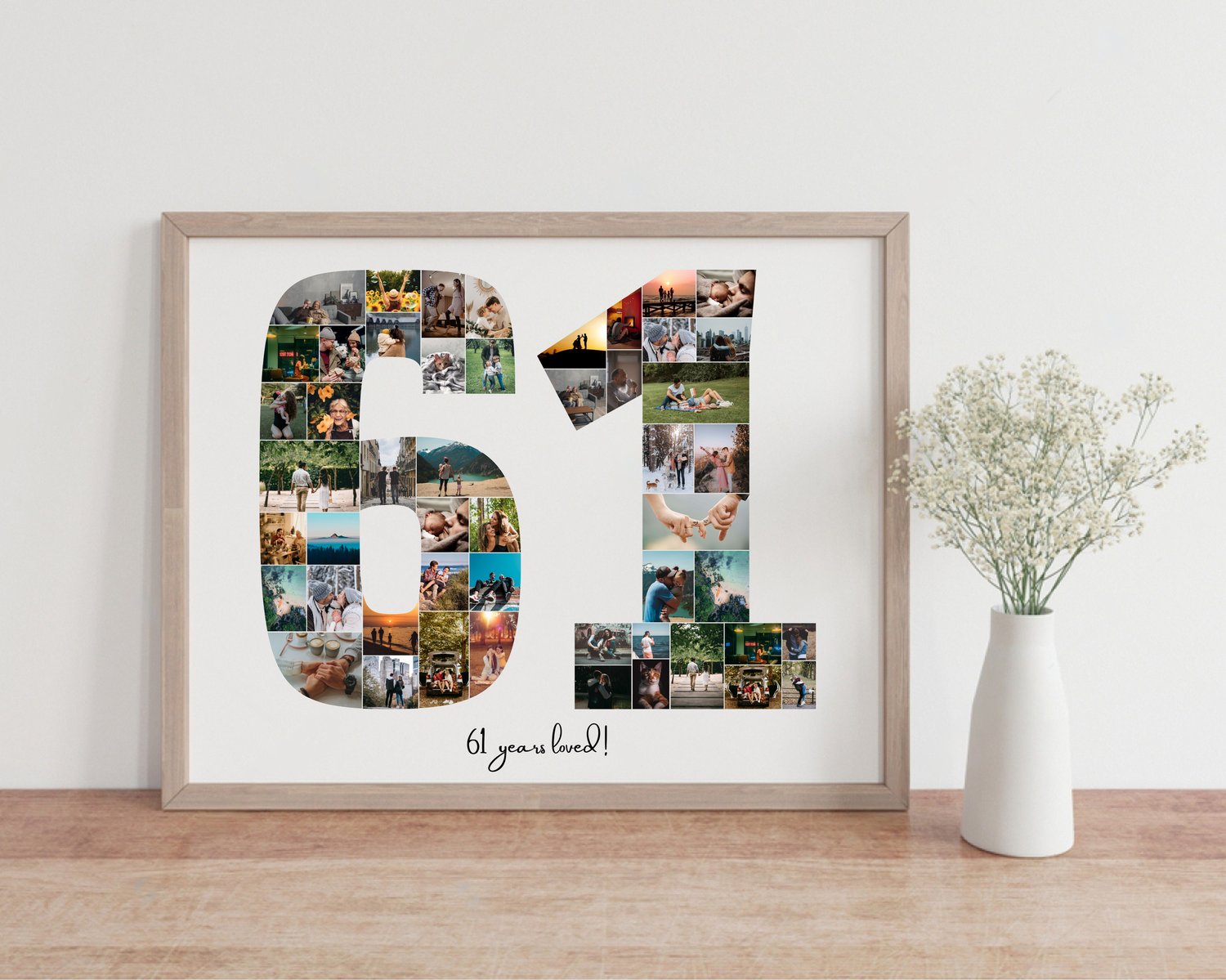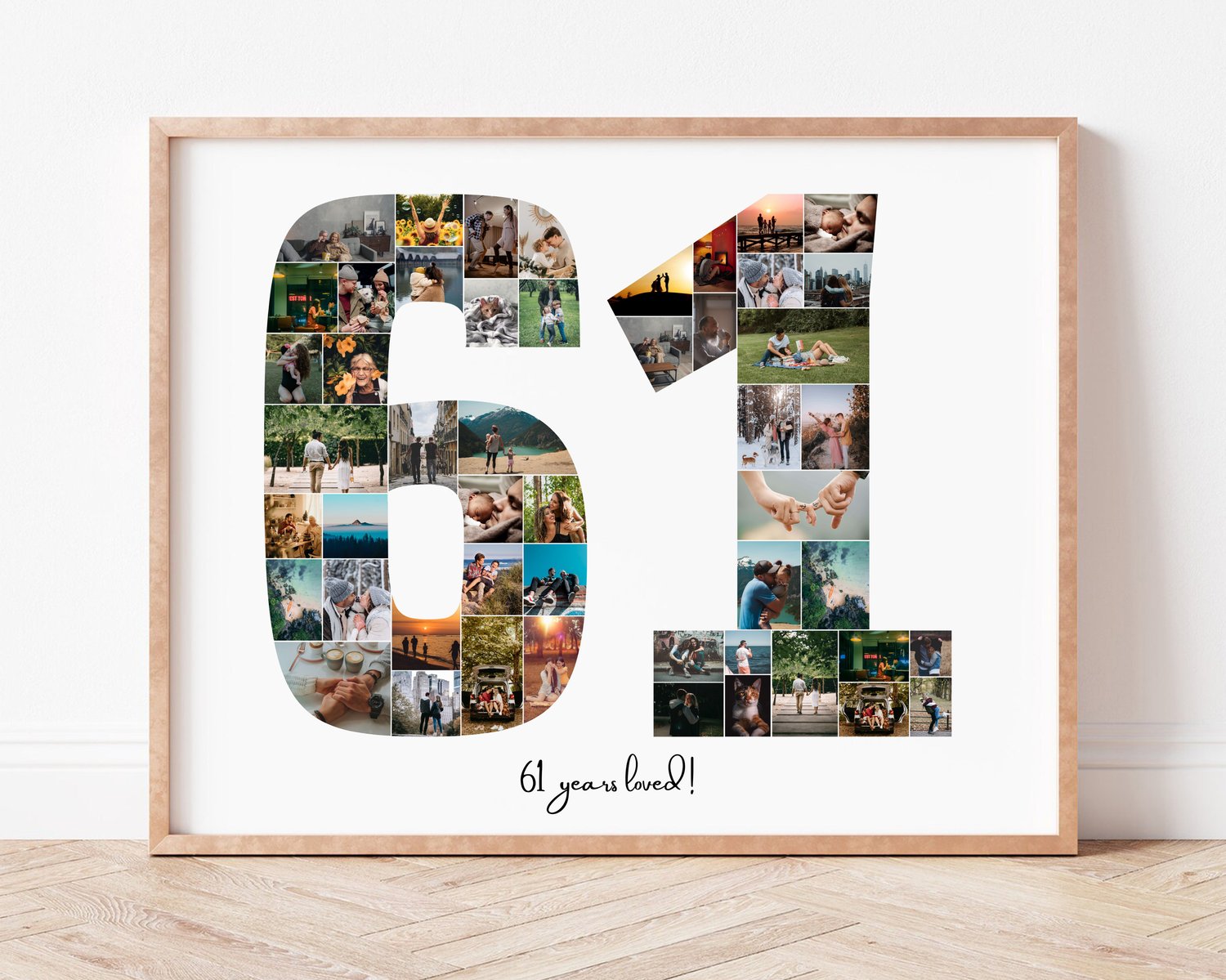 EDITABLE 50 photos, Custom 61st anniversary Collage, 61st birthday collage print, Photo Collage Gift, Number Collage, gift for him, 61 years
