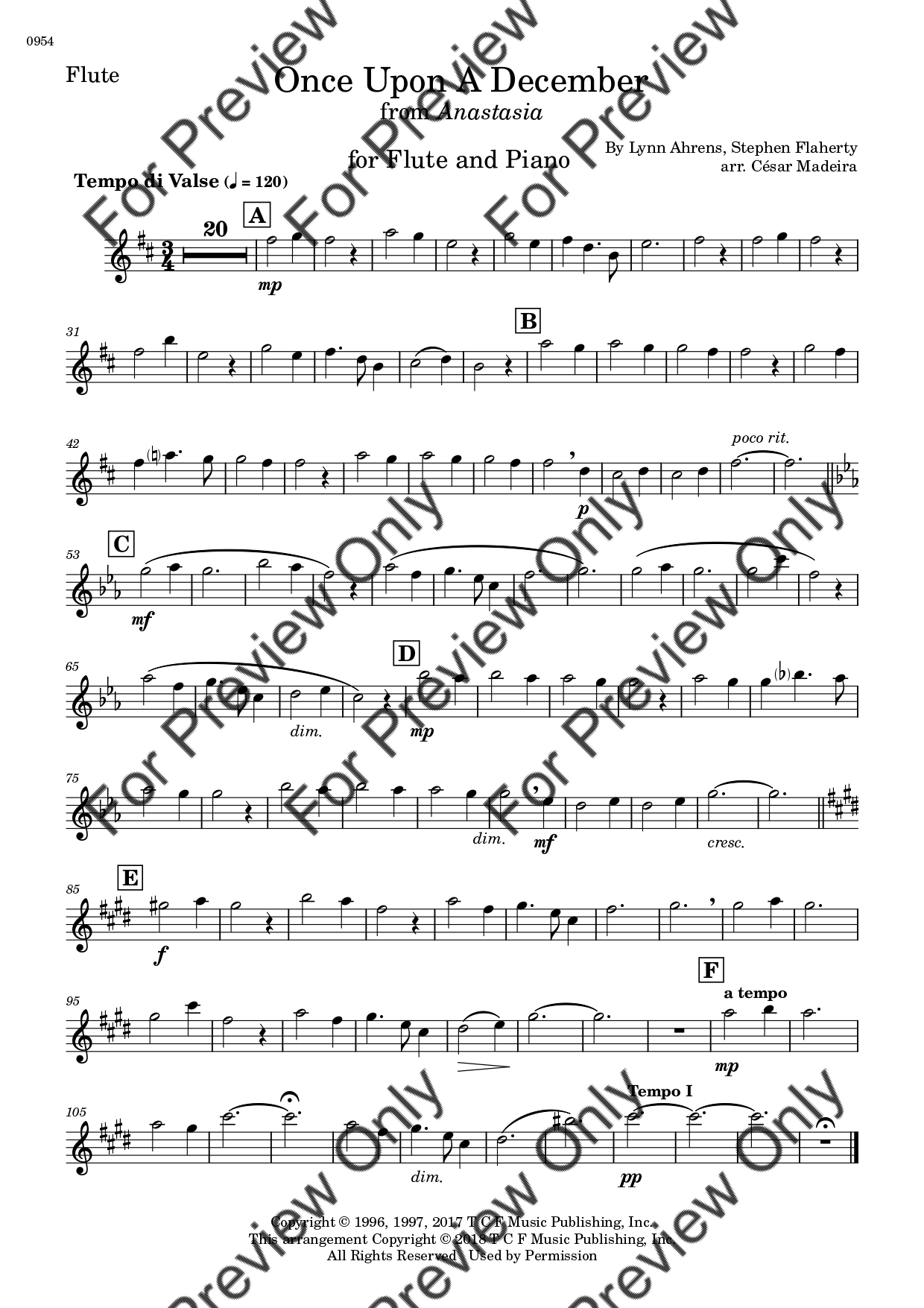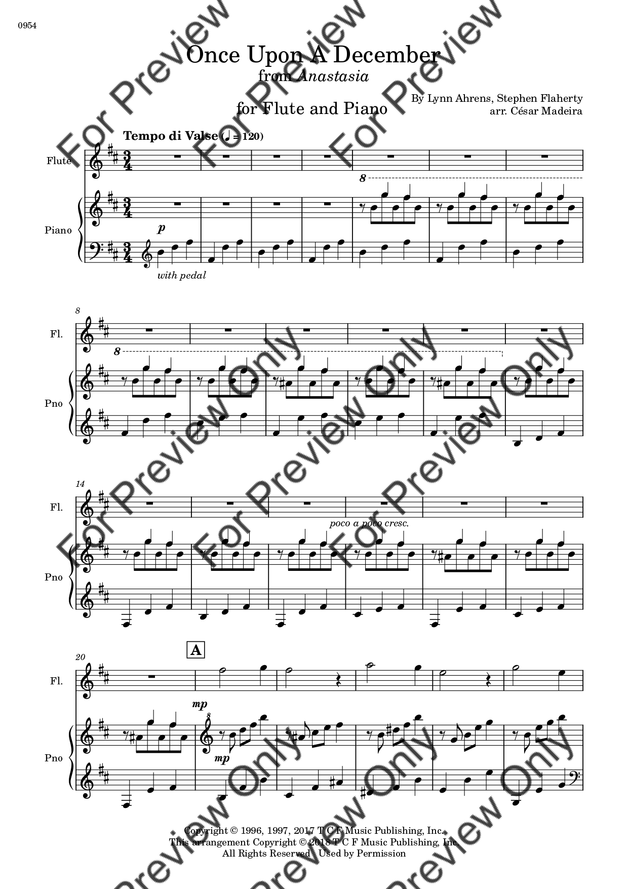 Once Upon A December from Anastasia. Arrangement for Flute and Piano. With Full Score and Individual Parts. Have fun!