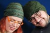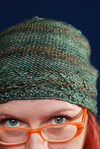 This basic hat is made with twisted stitches on a reverse stockinette stitch background, and is very much gender neutral — the evil version is sized for a large adult head size, which makes for a nice slouchy fit on a smaller head.
