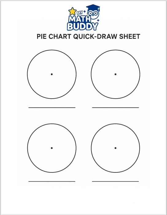 Four perfect circles with center points, ready for fraction, percent, and data projects.