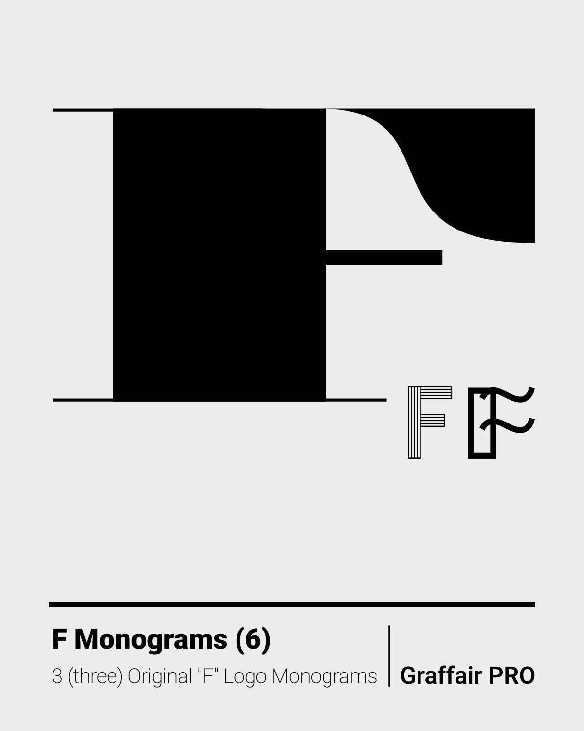 F Monograms (6): The 6th set of three original "F" logo monograms, selected from a total of 22, included in the "1050 SVG Monograms" super package, which also features an Index catalog.