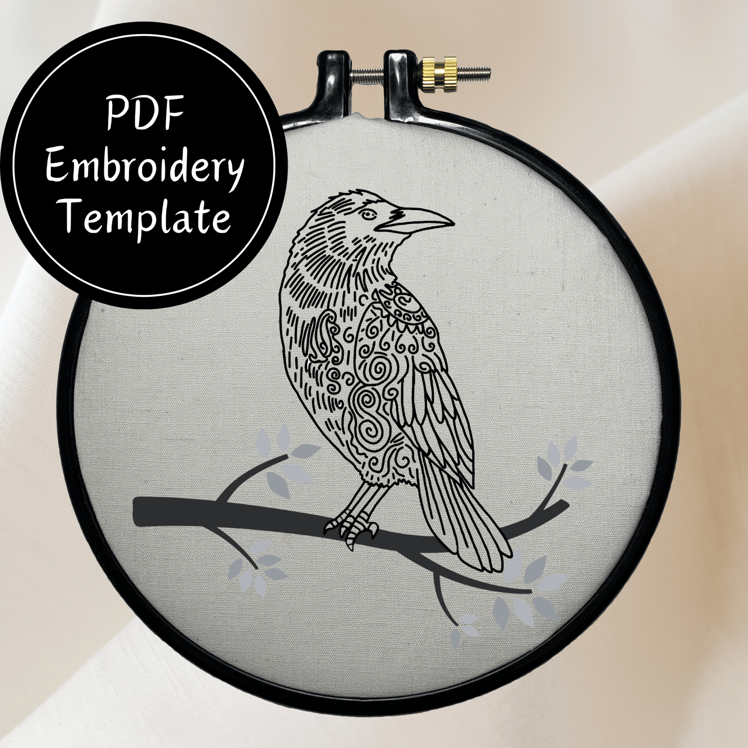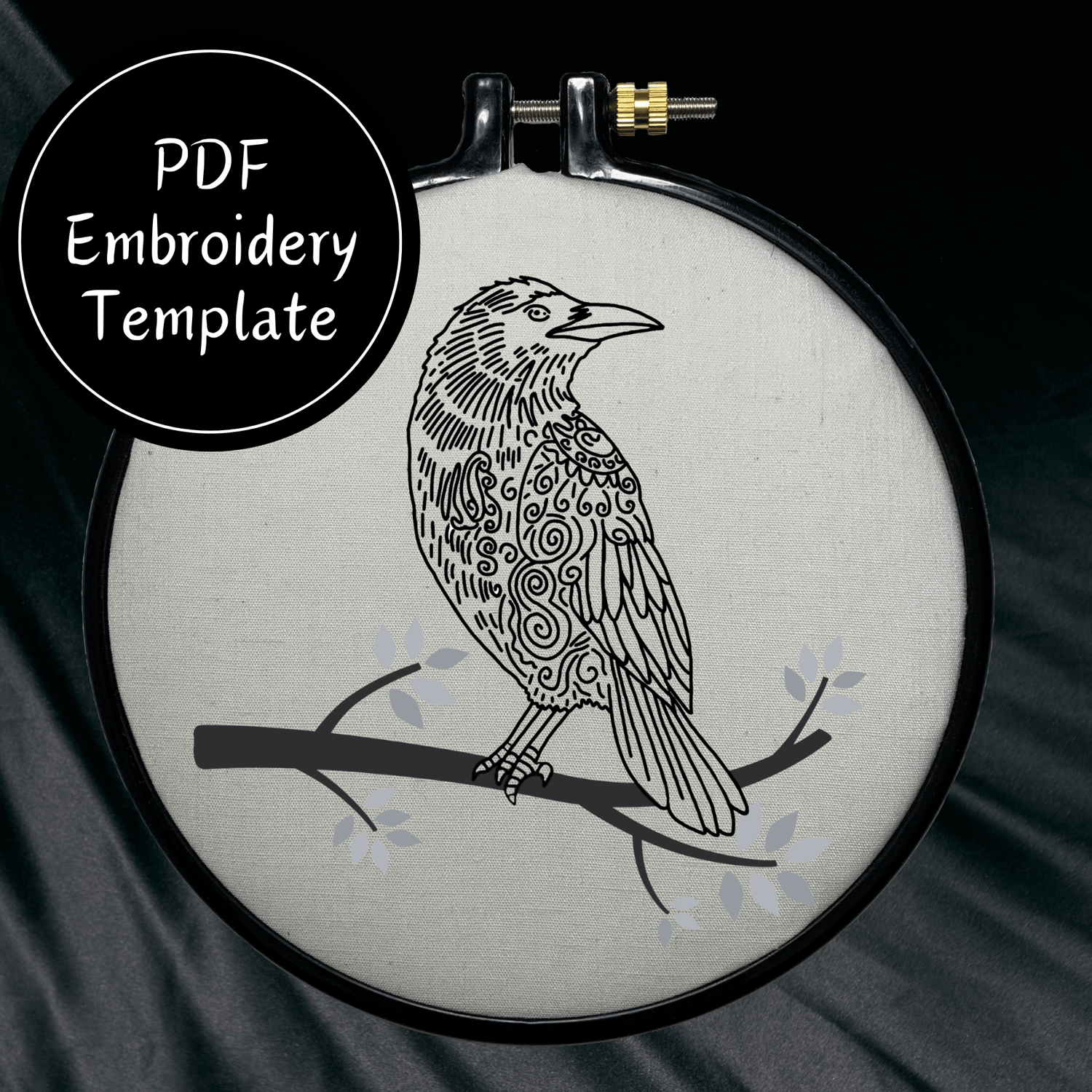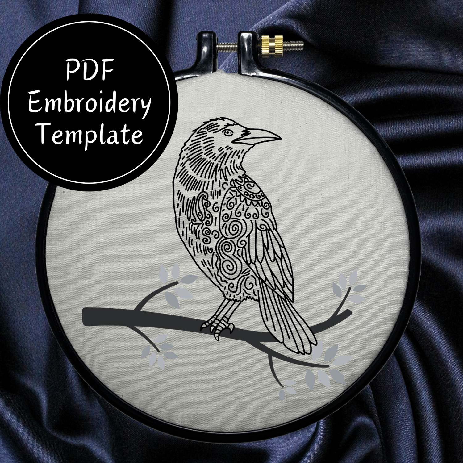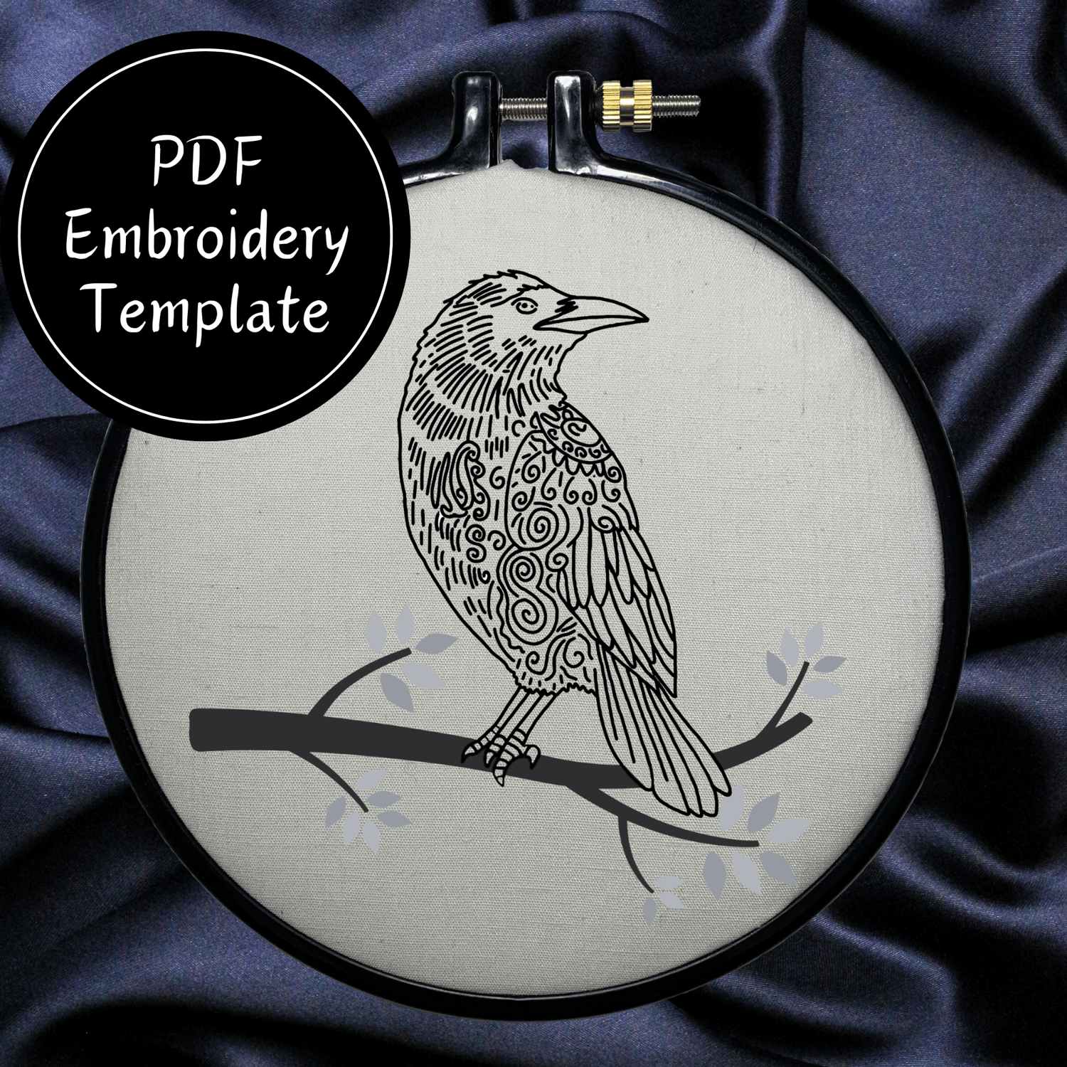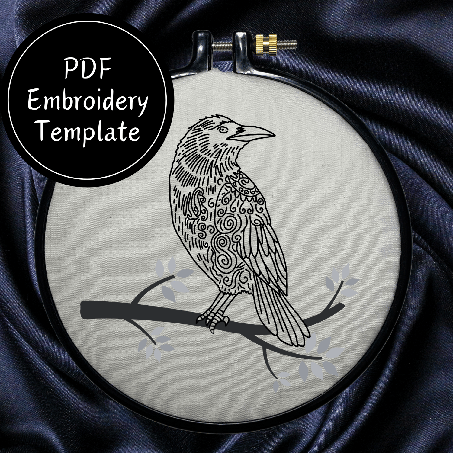 Paisley Crow Hand Embroidery Pattern DIY Embroidery