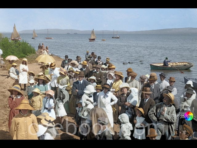 Albany - Crowd at the beach - 1915 - a colourised digital image.