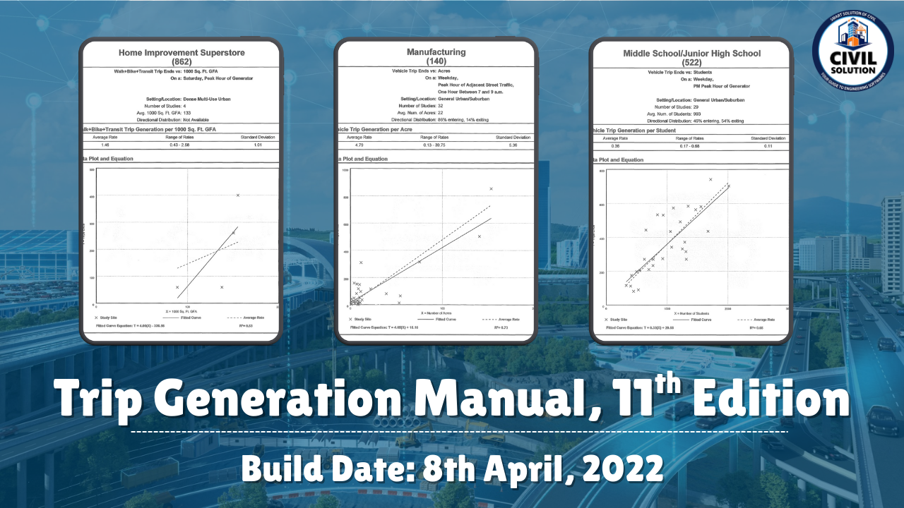 🚦Trip Generation Manual, 11th Edition - Vol 2 to 5 is the definitive reference from the Institute of Transportation Engineers (ITE) for estimating multimodal trip generation rates across diverse land uses in urban, suburban, and rural settings. Volumes 2-5 provide detailed land use descriptions, data plots, and trip rates for sites like housing, offices, retail, and industrial developments, supporting accurate transportation impact analyses.
