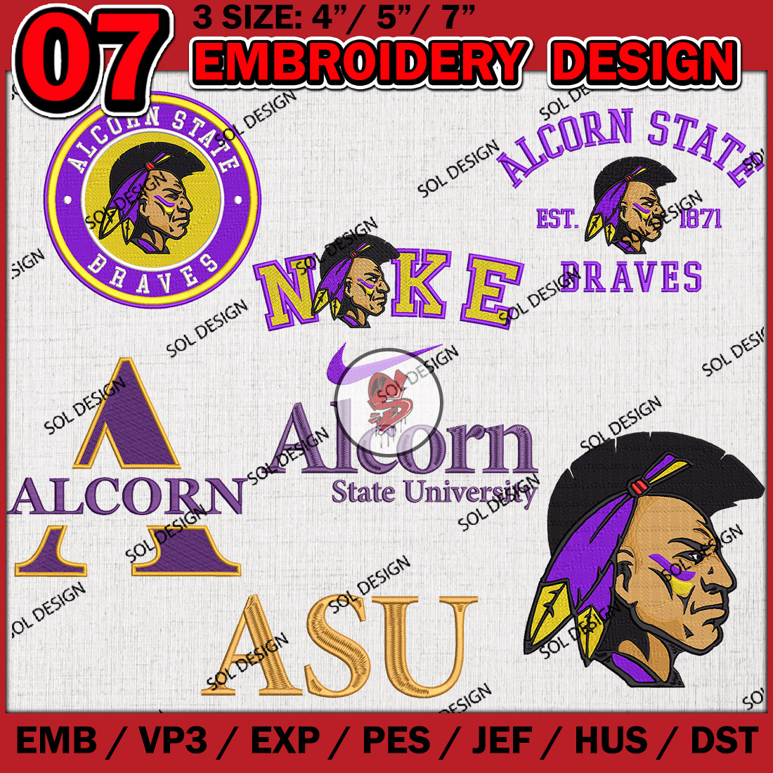 7 Alcorn State Braves Bundle Embroidery Files, College Football Embroidery Designs, NCAA Alcorn State Braves Machine embroidery Design Bundle, Ncaa Alcorn State Logo bundle, Digital Download