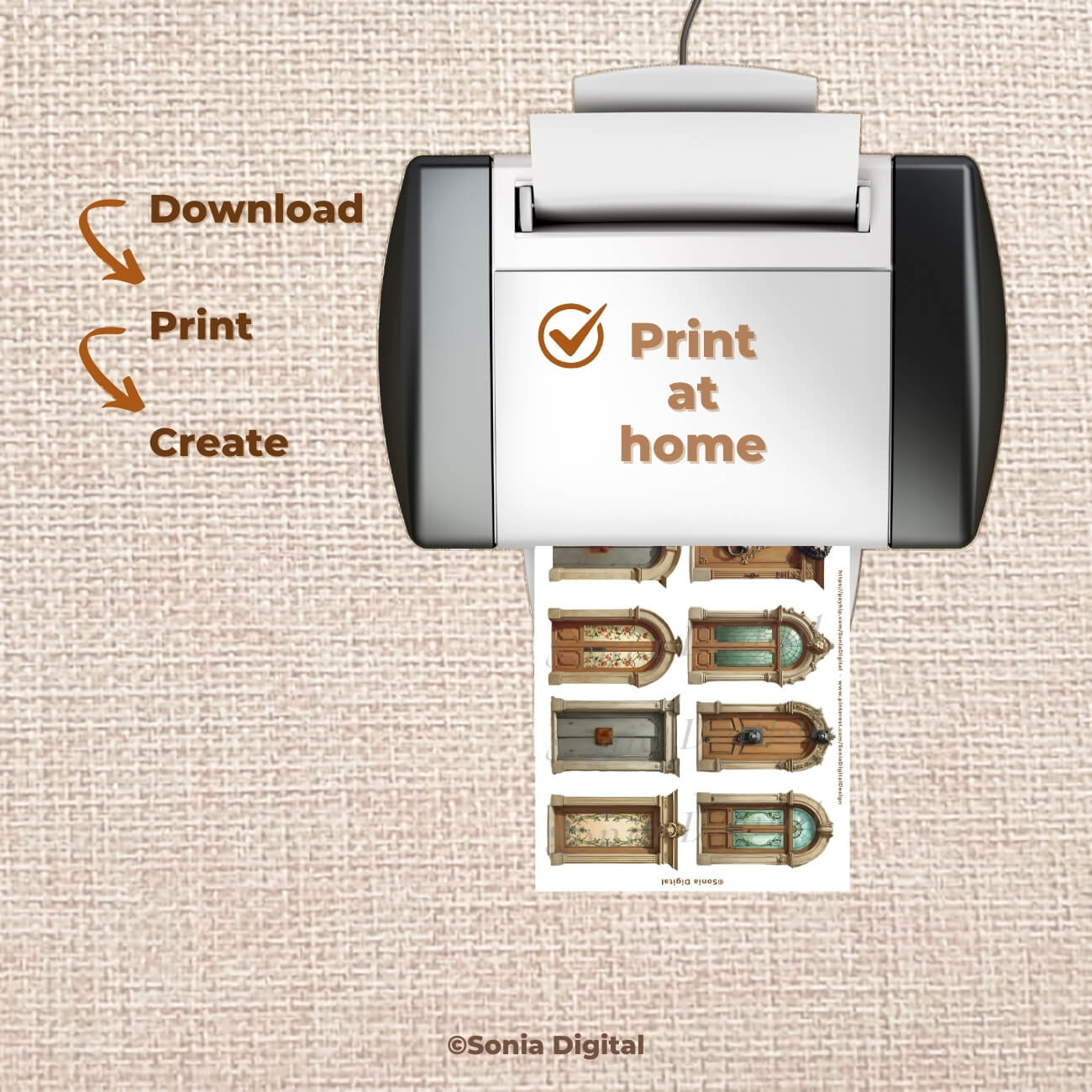Perfect for DIY enthusiasts, this downloadable series features charming period wooden door motifs, ready to be printed, cut, and added to your artistic projects.