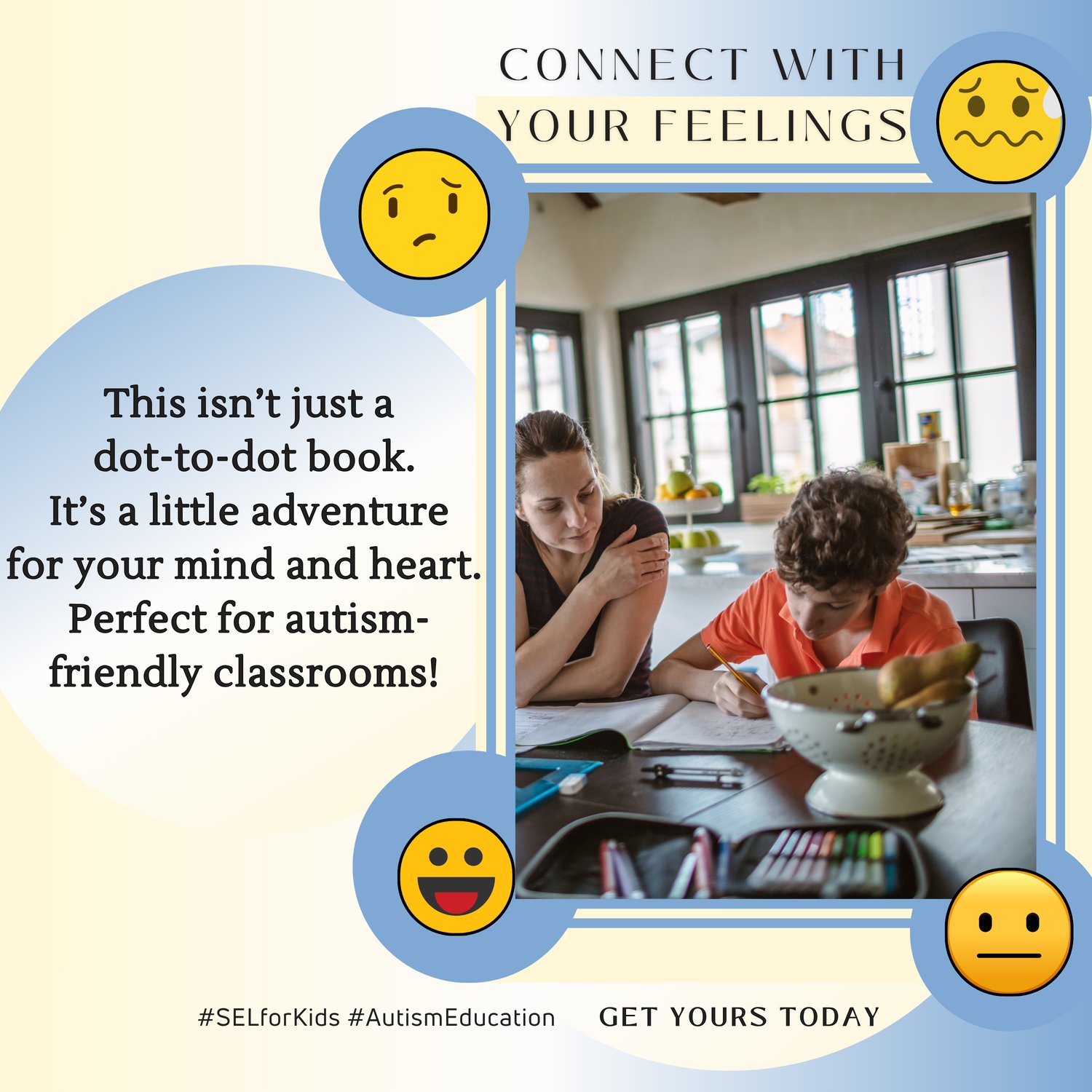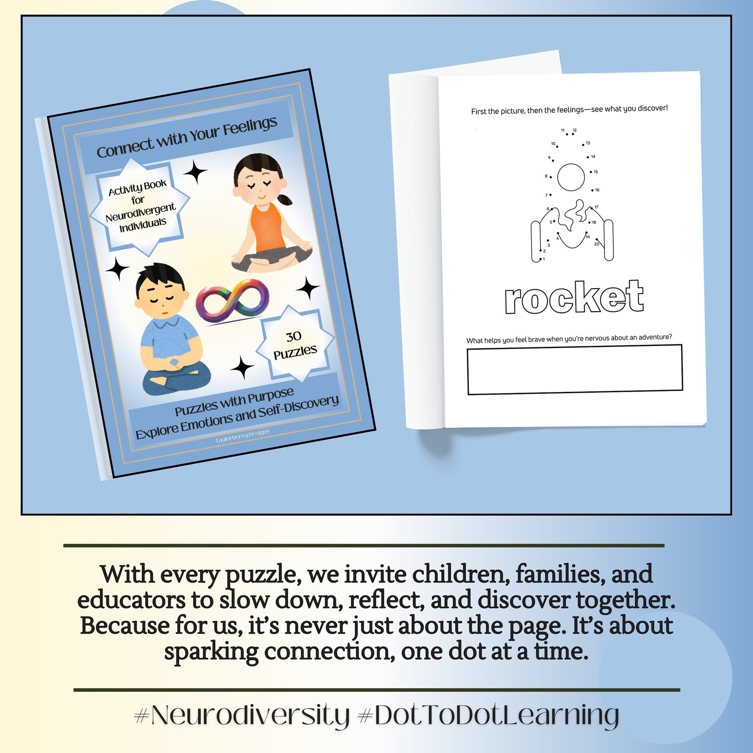 This sensory-friendly activity book invites kids to explore emotions through dot-to-dot puzzles, SEL prompts, and creative reflection. Designed for neurodivergent learners, it fosters emotional growth in a safe, structured format.