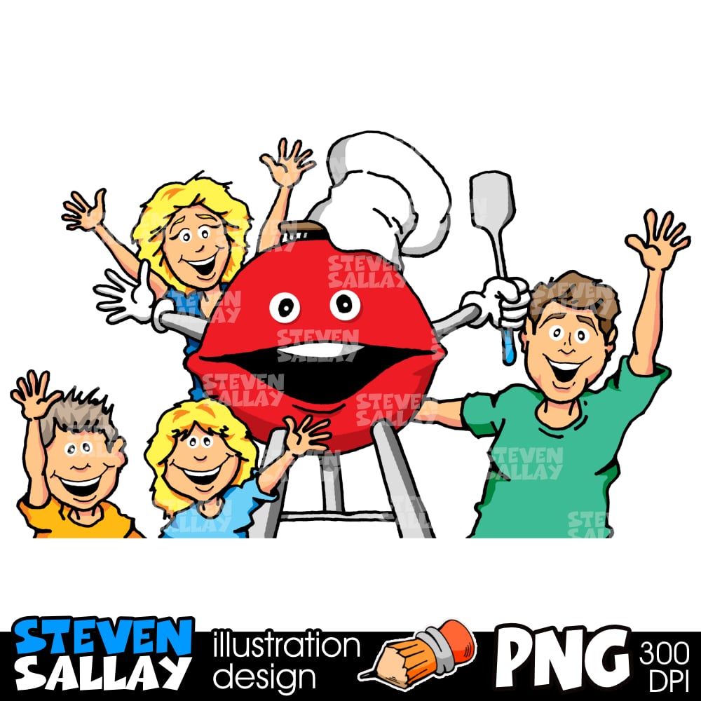 Family Picnic Cartoon Clipart – Cute Summer BBQ Illustration – Outdoor Family Gathering PNG Digital Download.