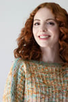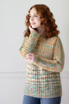 This sweater is worked in two pieces from the bottom up. Both Back and Front panels are worked along with the sleeve halves. Lower sleeves are shaped with increases first, and then remaining sleeve stitches are cast on; upper sleeves and shoulders are shaped with short rows before the upper sleeve/boat neckline border begins. Although sleeves have a Dolman shape, they are not too deep.