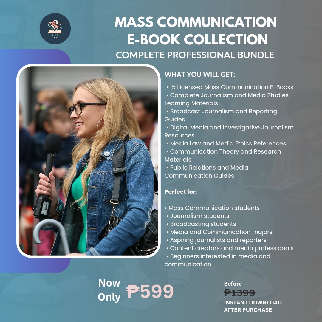 This Complete Mass Communication Course Collection is a licensed digital bundle designed to help students, aspiring journalists, media professionals, and communication majors master the essential principles of journalism, media studies, broadcasting, and digital communication.