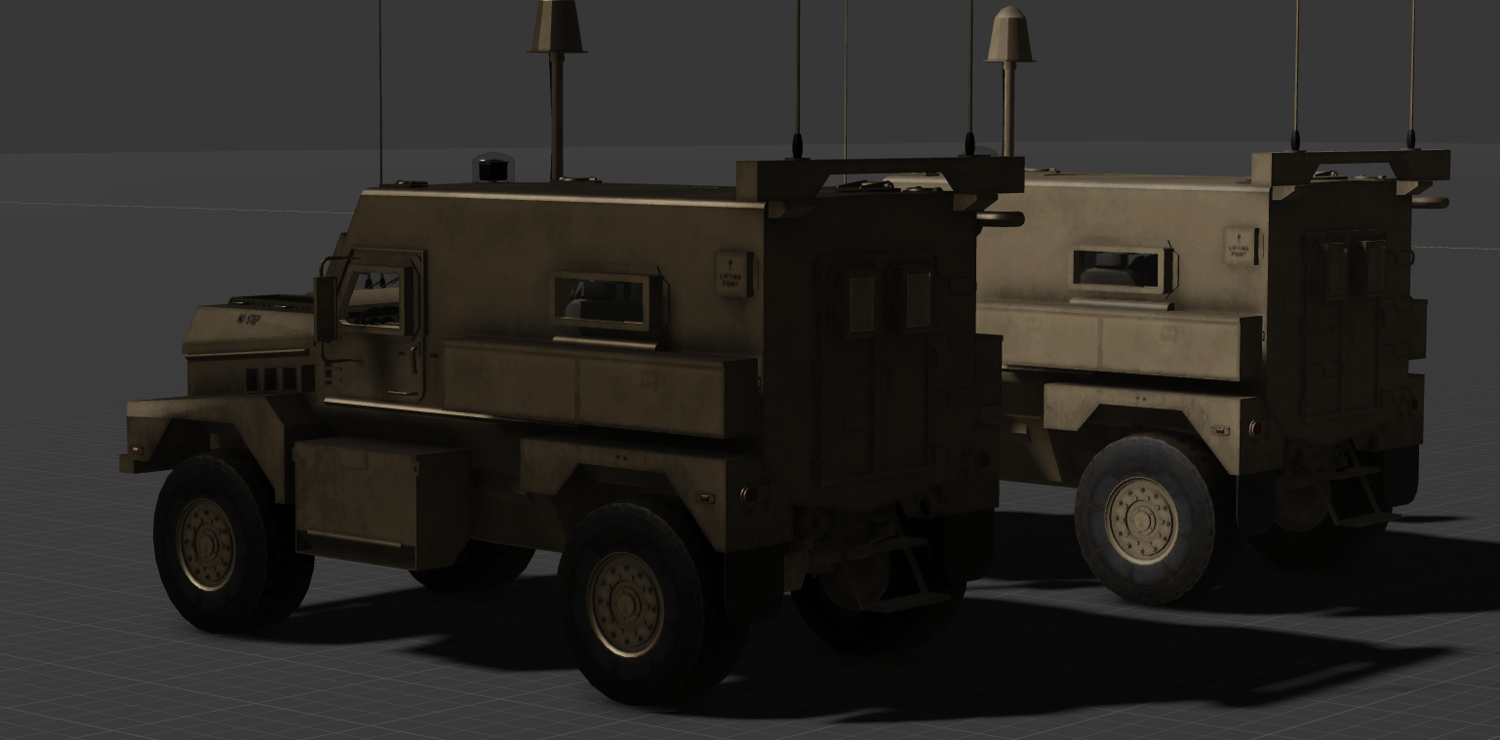 • Realistic physics for the Cougar MRAP 4x4 and has suspensions.