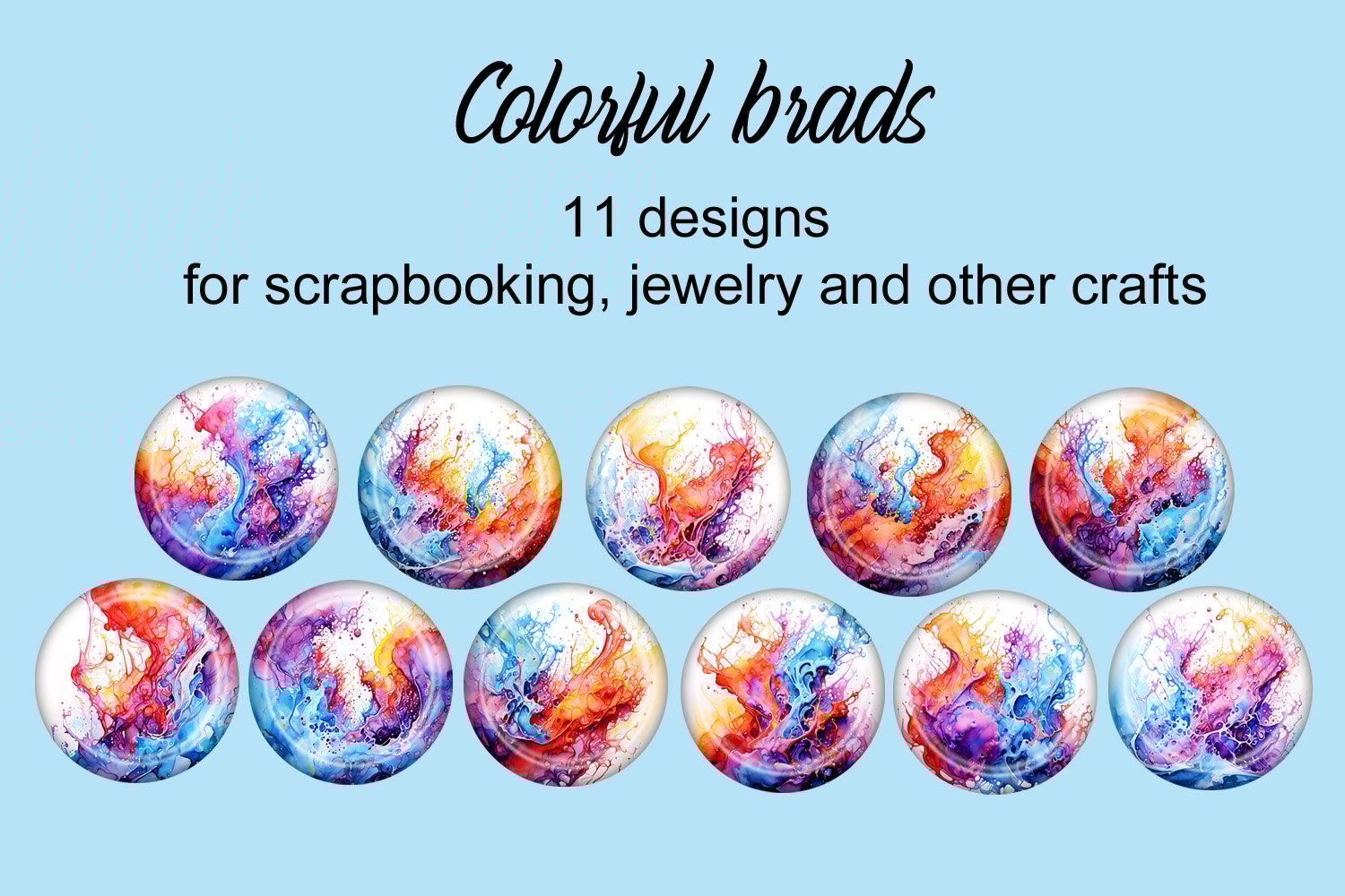Colorful brads is collection of 11 digital scrapbooking elements. it’s made with color splashes, so it’s pretty and perfect for any kind of crafts.