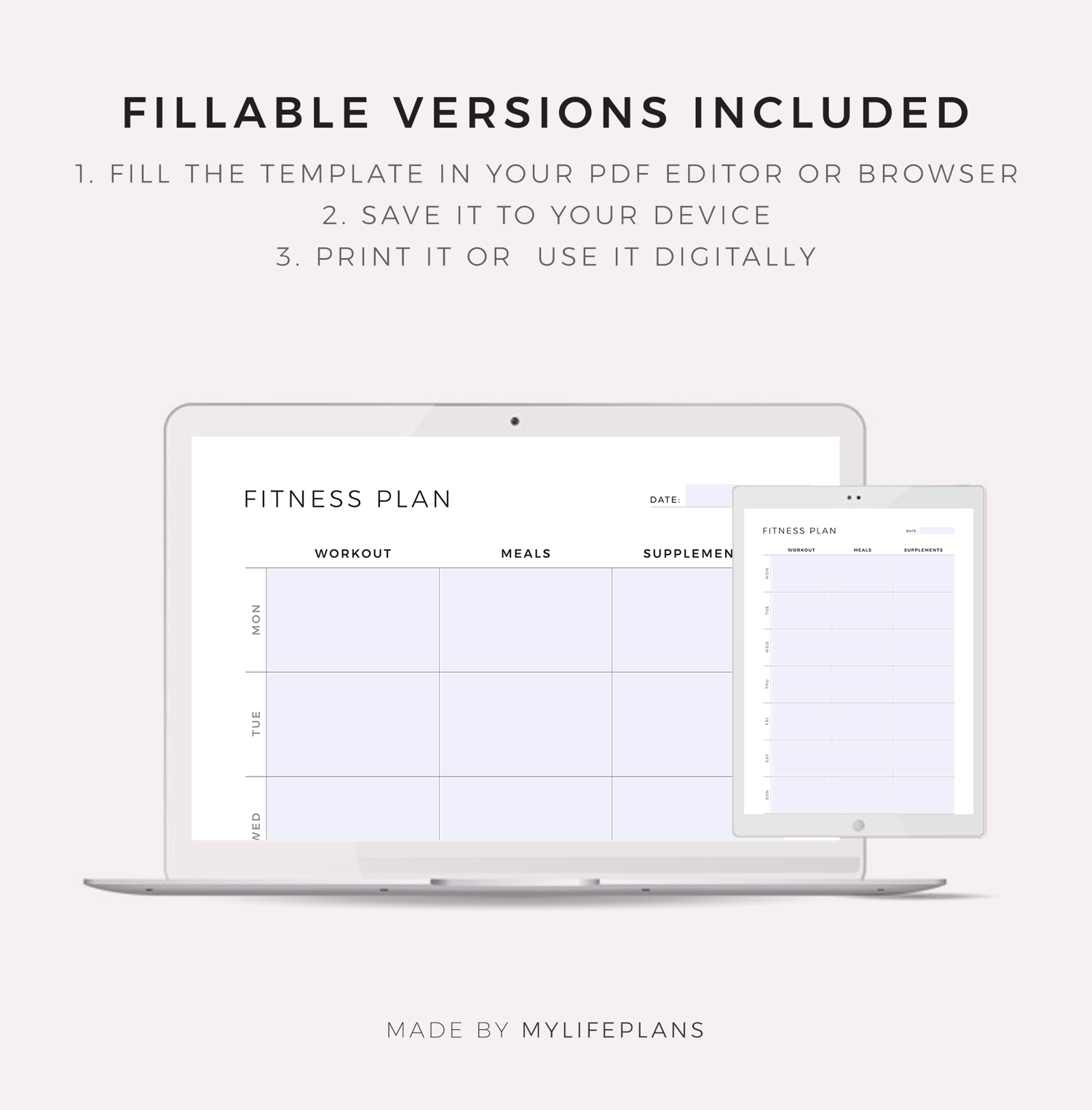 This is a printable weekly fitness planner — just download, print, and start using it right away.