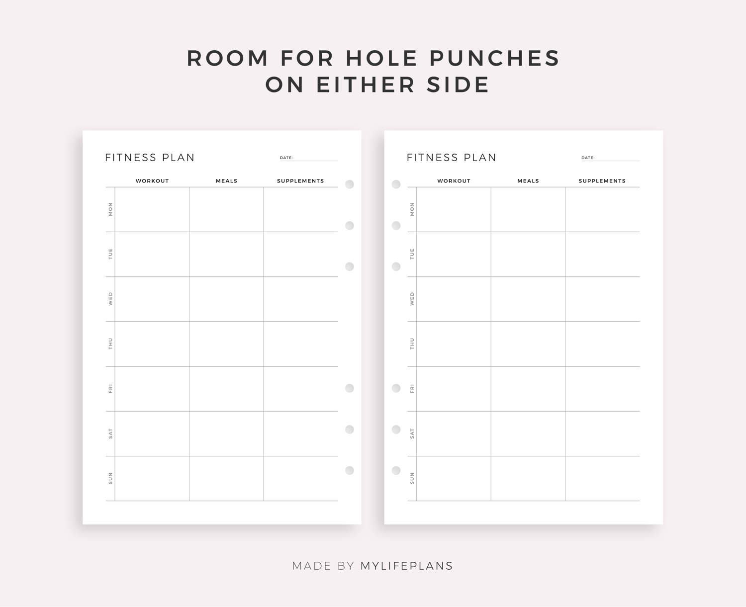Weekly Fitness Planner Printable, Workout Planner, Meal Planner, Vitamin Intake, Simple Fitness Journal