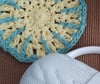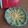 A quick and fun way to bring the tropics to your homes! These coasters are perfect last minute makes that uses just 70 yds of main color and 25 yds of contrast color to make a set of 4! The crossed dc lends a nice texture and the Treble stitch which is worked two rounds below creates a nice edge!