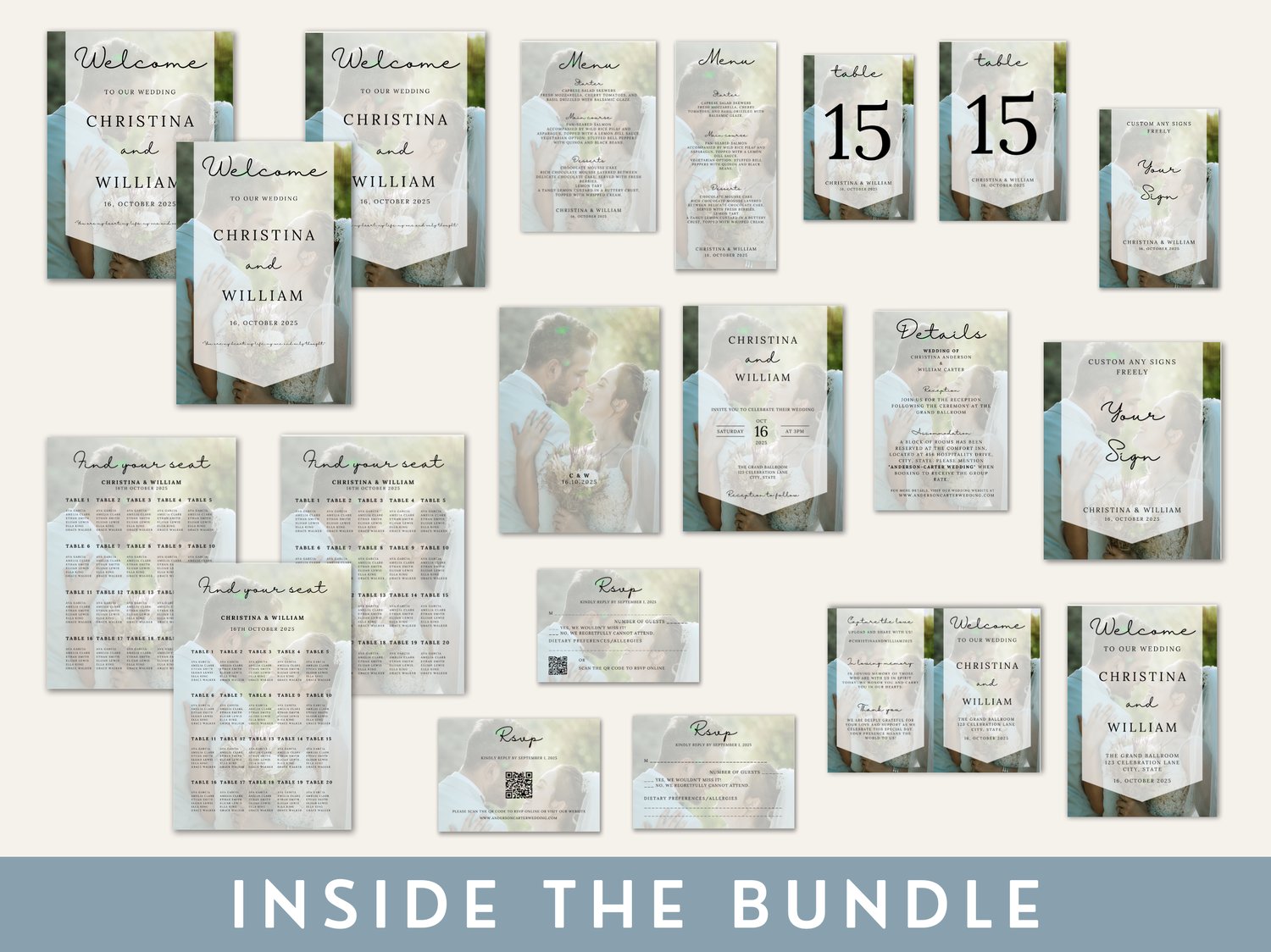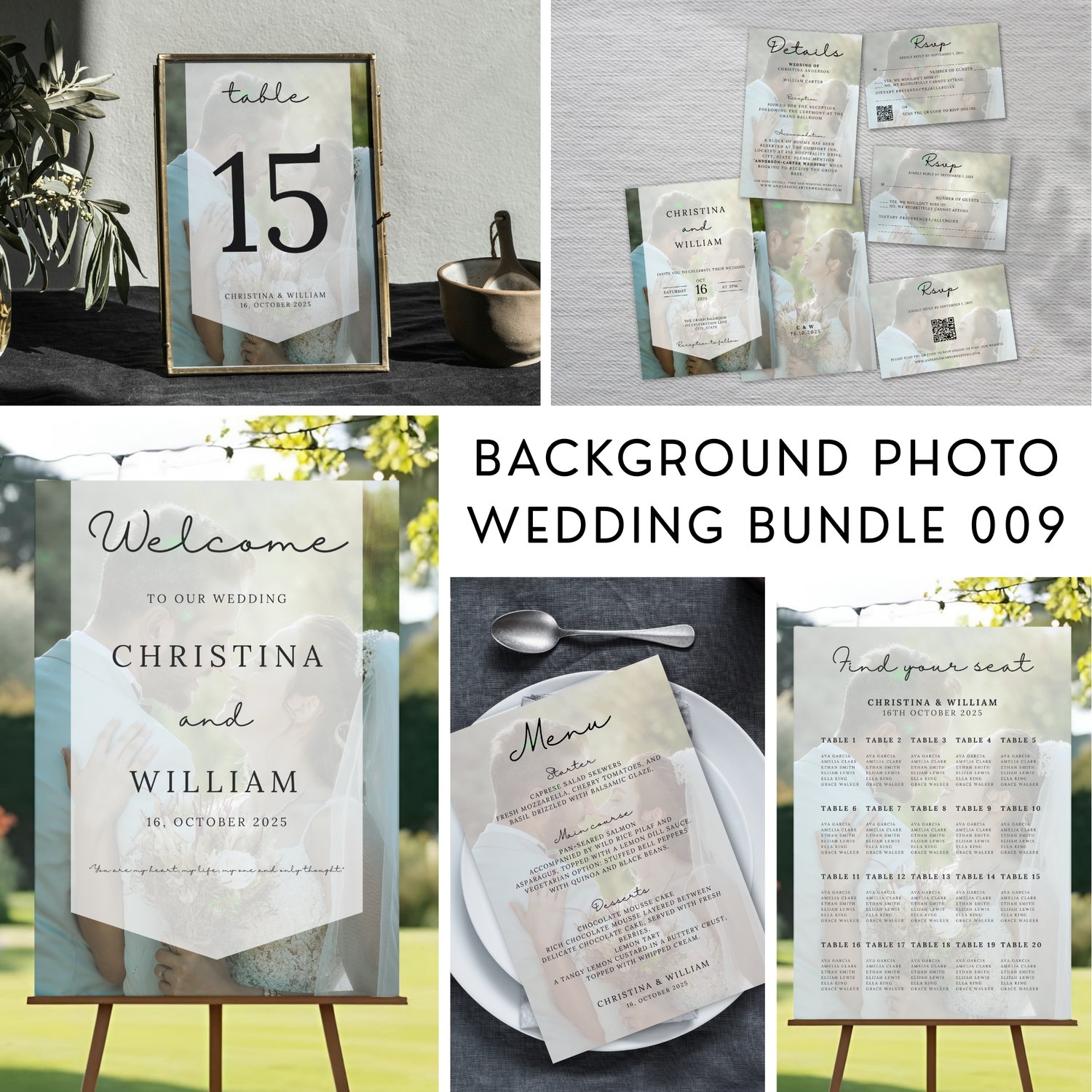 This photo background wedding invitation suite includes a personalized invitation, welcome sign, seating chart, and others. Showcase your favorite picture while keeping your wedding stationery beautifully coordinated. YOU MAY USE DIFFERENT PHOTOS ACROSS ALL STATIONERY. It's dynamic :)