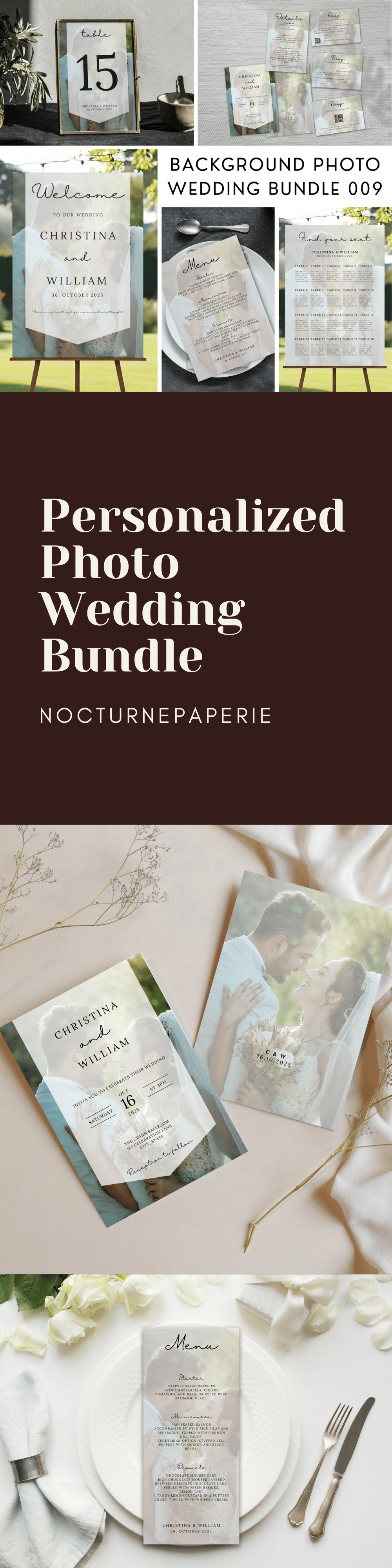 Photo Background Wedding Invitation Suite Editable Canva Template Personalized Wedding Stationery Collection Custom DIY Ceremony Event 009