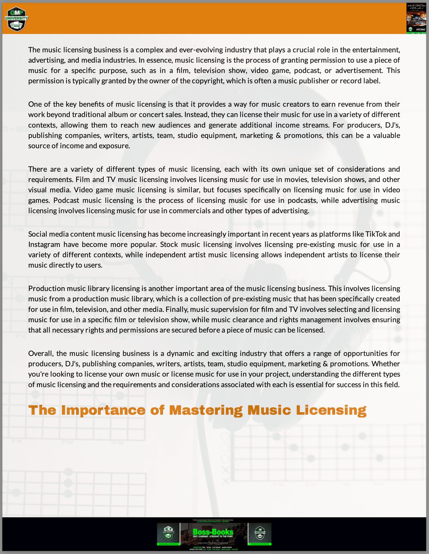 Music licensing Business - GMP University Mobile Boss Book - With 5 Free A.I Website Builders