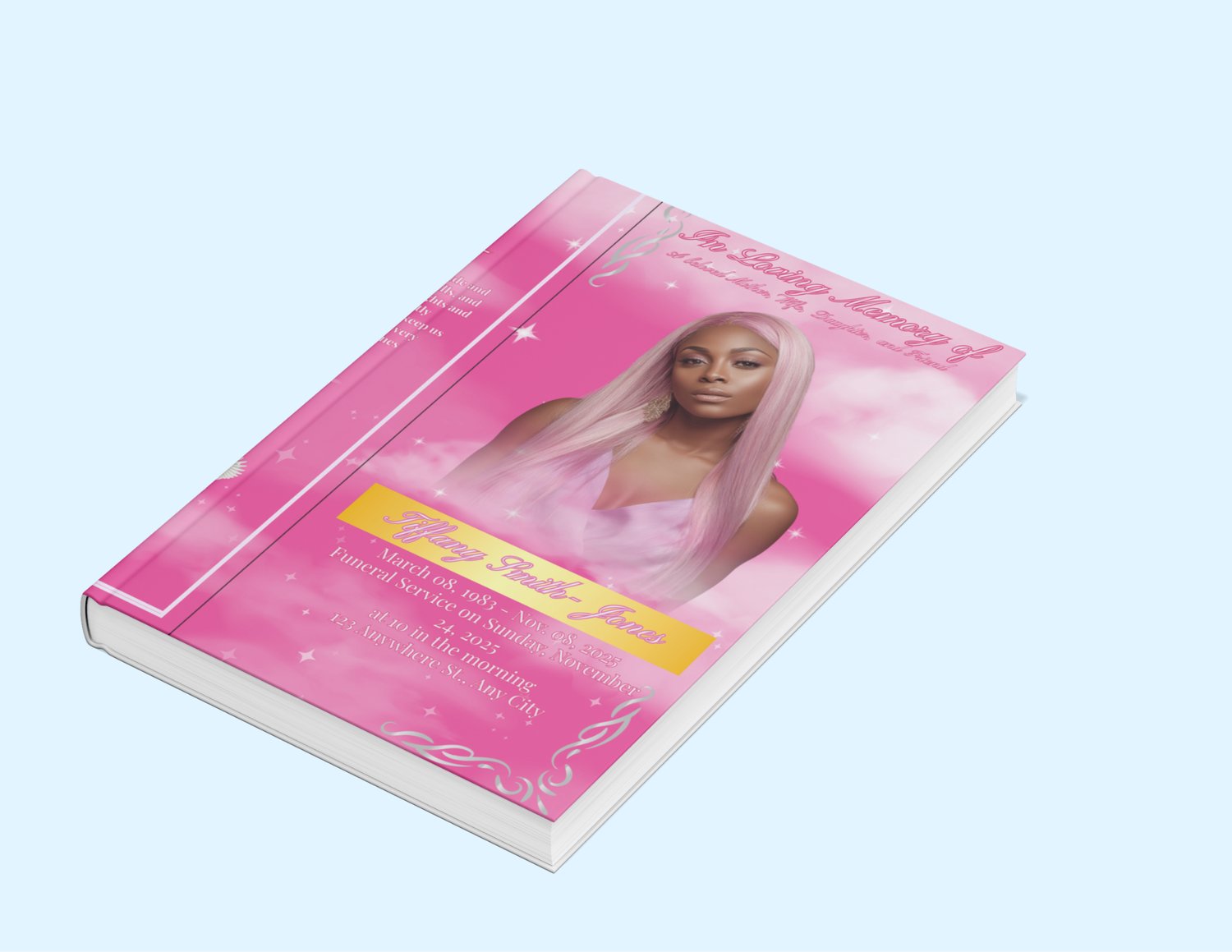 2026 Pink Mulifold Obituary ( Canva)