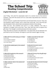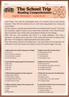 Reading Comprehension – The School Trip (A1–A2 Level) ✔ Includes Color & B&W Versions + 8 Multiple-Choice Questions