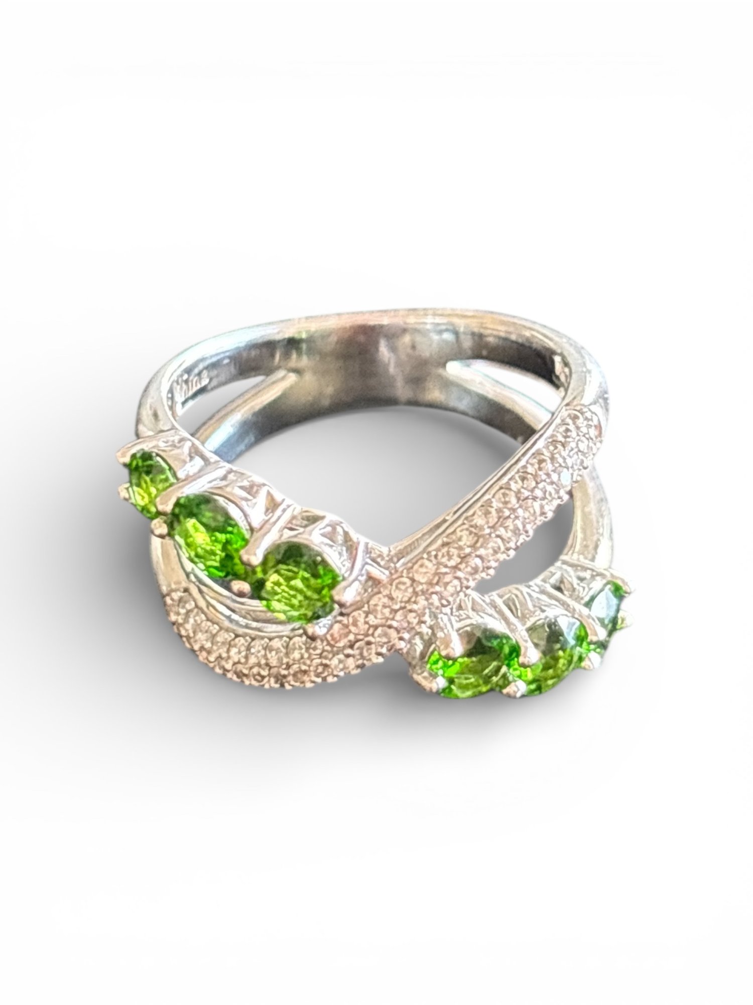 Sterling Silver Green Crystal Crossover Ring