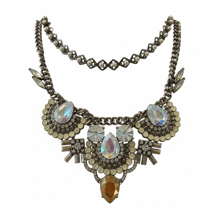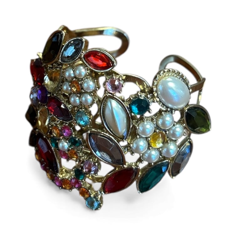 - Stones: Green crystals with clear pavé crystal accents