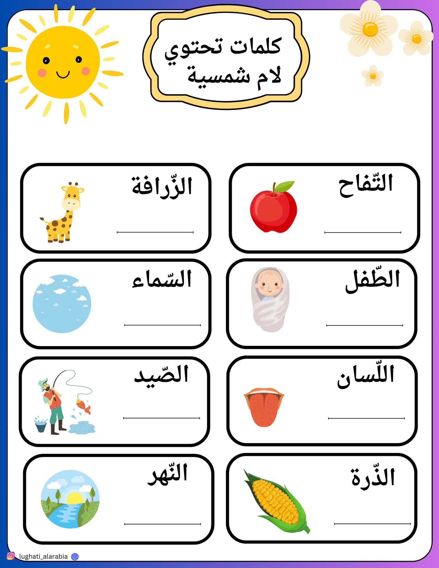 وقد استخدمتُ فيه أبسط الطُّرق واخترت لكم كلمات سهلة متداولة من مُعجمنا اللُّغوي المعروف ومعها صُور مُرفقة مُعبِّرة