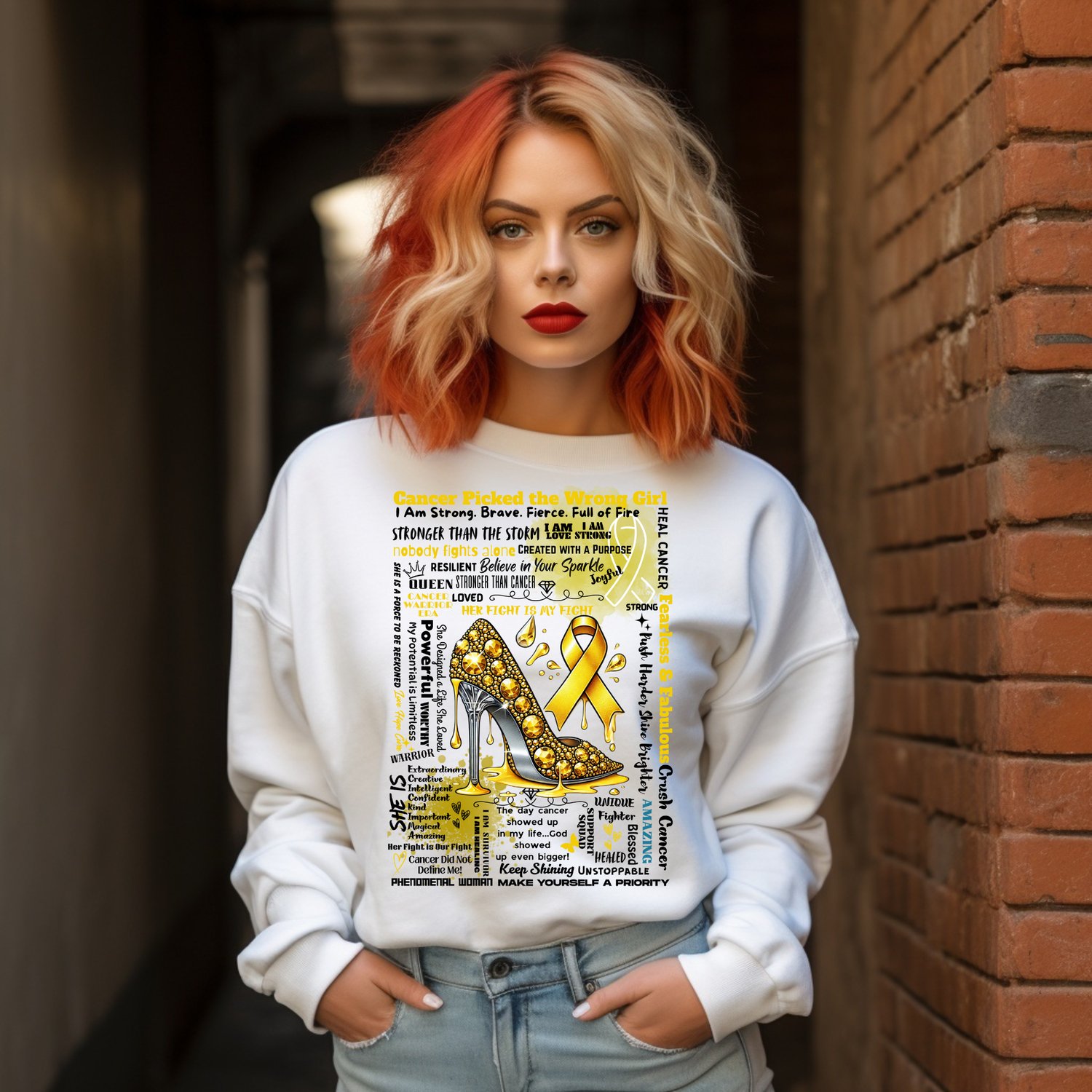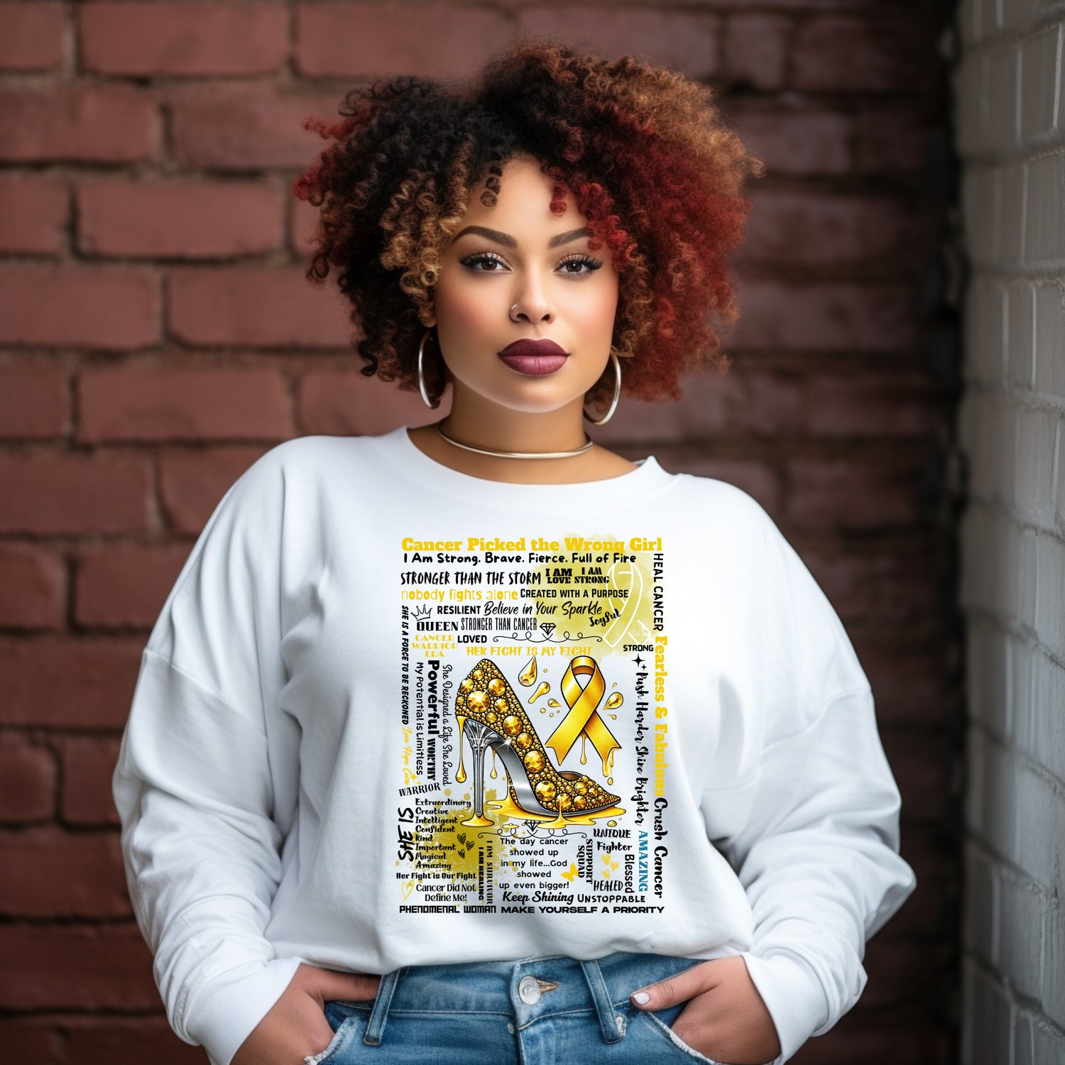 This Gold Cancer Awareness Bundle celebrates courage, resilience, and strength with bold dripping-gold high heels, empowering affirmations, and sparkling awareness ribbons. Perfect for supporting childhood cancer awareness or honoring the warriors who inspire us daily.