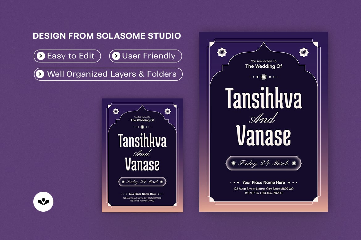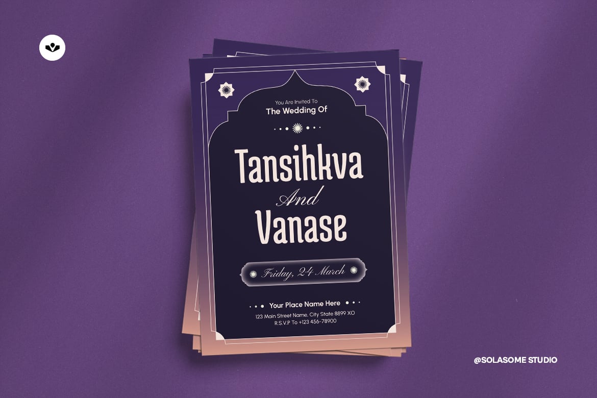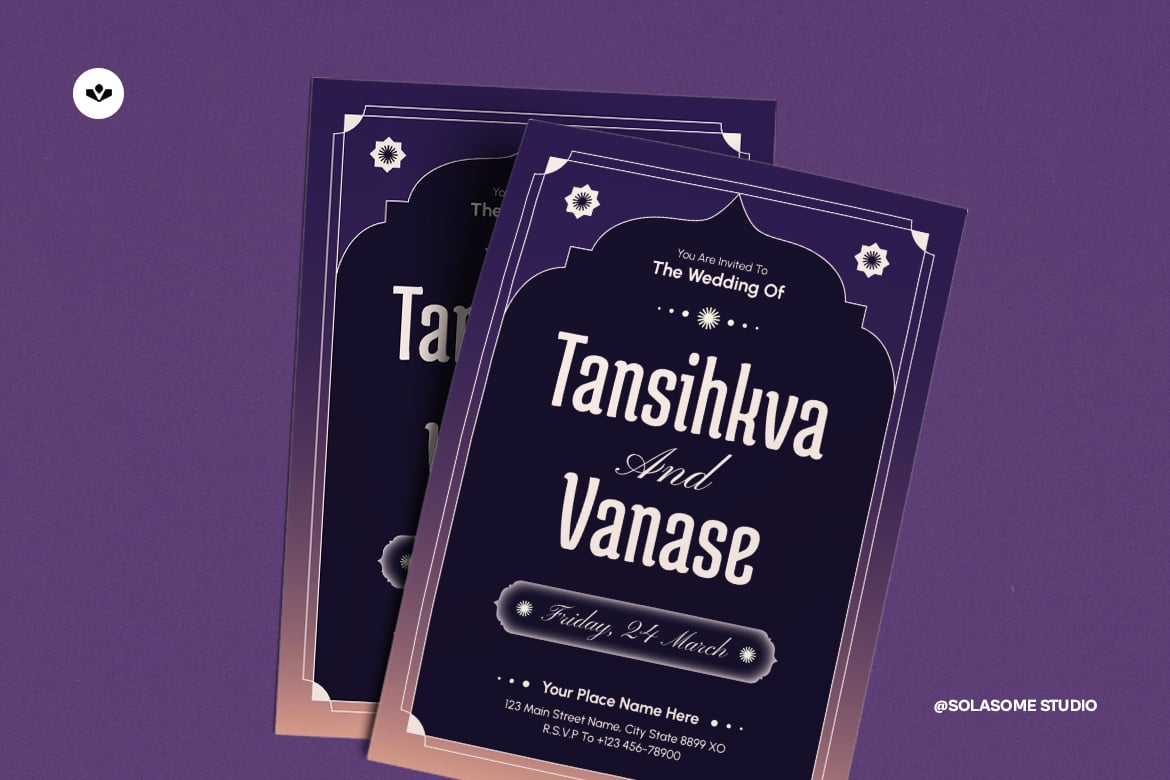 This is an invitation design template - also be used for design various project design invitation. It's perfect for couple seeking sophisticated invitation solutions. This design will make your special day unforgettable and memorable event.