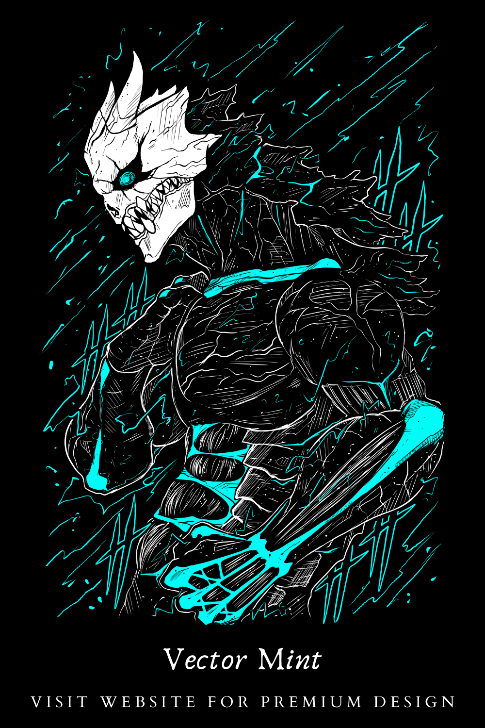 Kaiju No 8 Monster Form Anime Streetwear Graphic PNG Dark Kaiju Warrior Manga T-Shirt Design