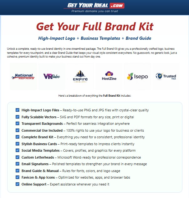 - Complete Brand Kit – Everything you need for a consistent, professional identity