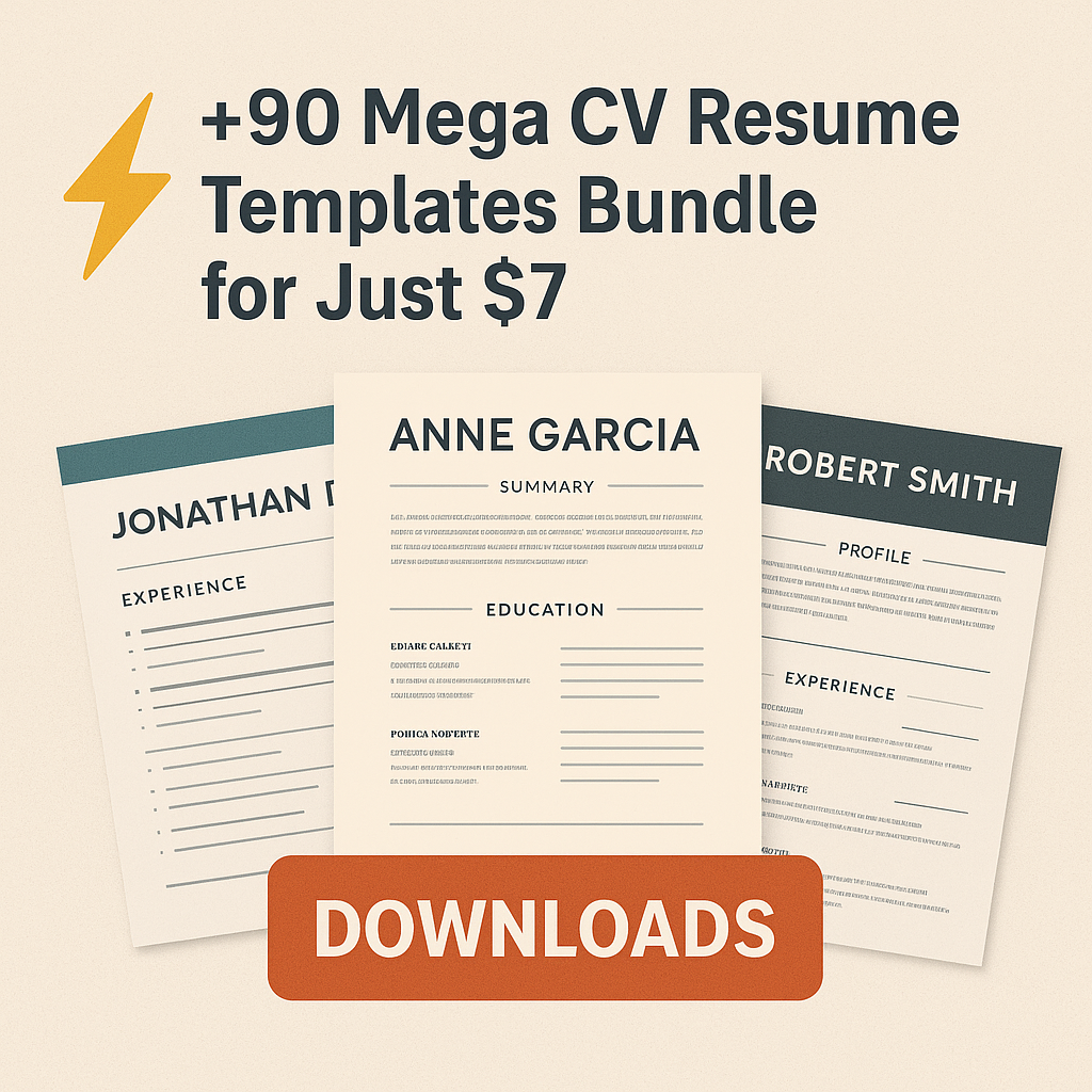 This Mega CV Bundle includes 90+ professionally designed templates—ready to edit and optimized for results.