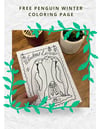 Free Penguin Printable Winter Love Coloring Page – Cute Winter Coloring Sheet for Kids & Adults