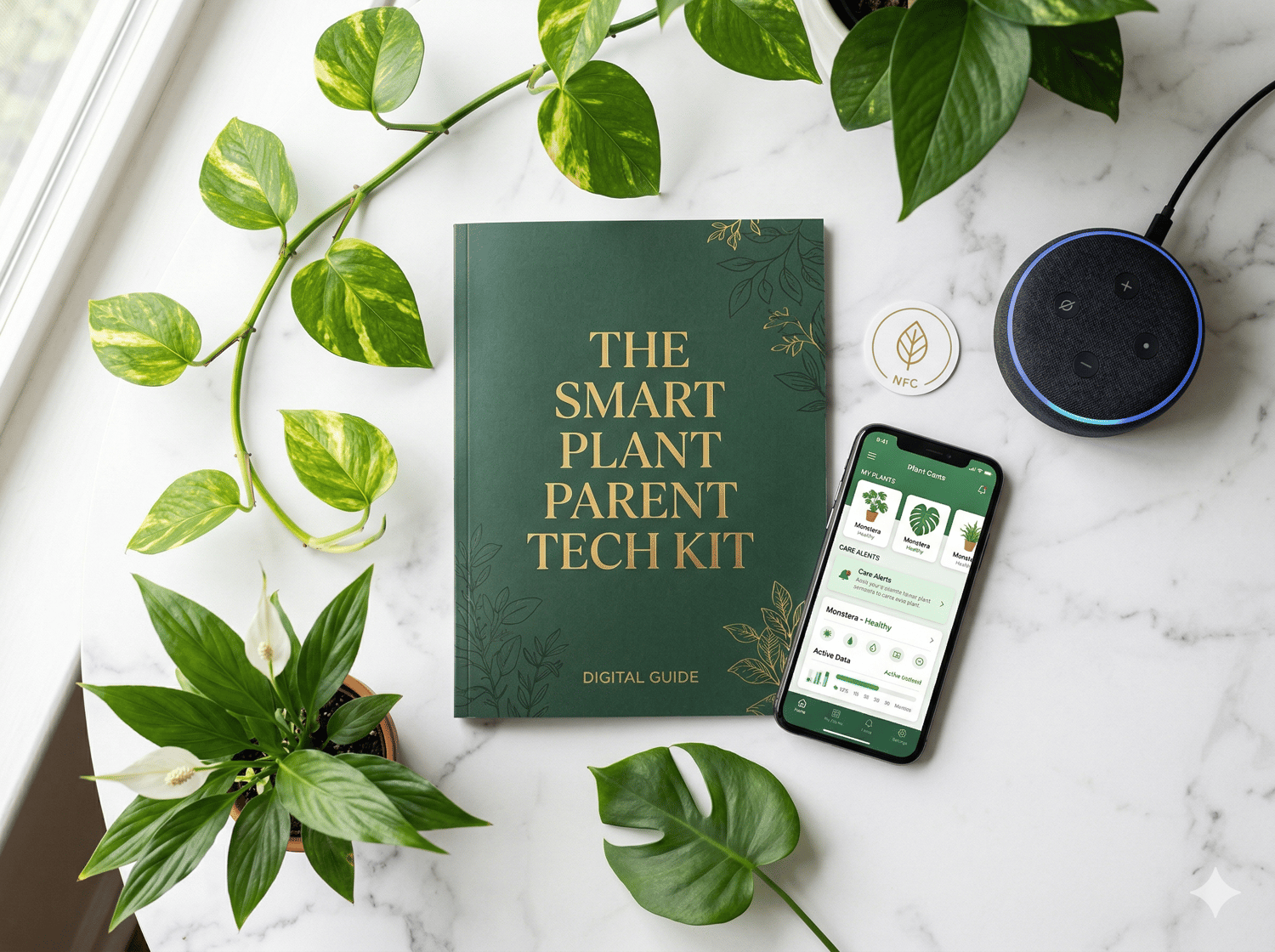 This Smart Plant Parent Tech Kit is the ONLY plant care digital bundle that combines NFC technology, Alexa voice routines, AI diagnosis prompts, and smart gadgets into one beautiful, practical system.