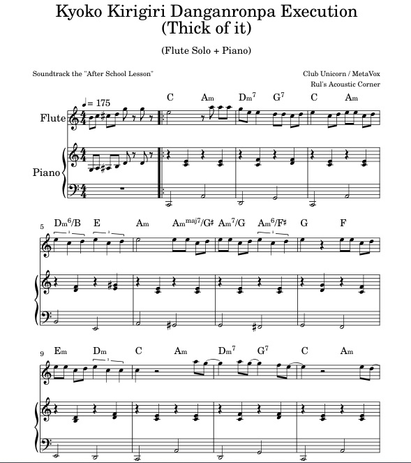Kyoko Kirigiri Danganronpa (Thick of it) | Flute Piano PDF Audio