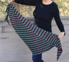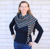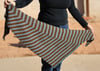 This pattern is for a tunisian crochet triangle shawl that is worked sideways with two colors.