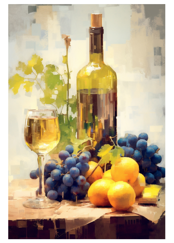 Immerse yourself in the enchanting world of double exposure still life art. This captivating painting technique mirrors the mesmerizing effect of overlapping multiple exposures in photography. Elements from different sources seamlessly blend together, creating a layered and ethereal composition that ignites the imagination. In this dreamlike realm, the lines between reality and fantasy blur as elements merge and fade into one another. Behold the beauty of a wine bottle and glasses, delicately intertwined with a bountiful bunch of grapes and an exquisite cheese board adorned with a variety of flavorsome cheeses. Indulge your senses as you savor the artistic fusion of flavors, colors, and textures. Step into this captivating double exposure masterpiece and experience a world where art and imagination intertwine.