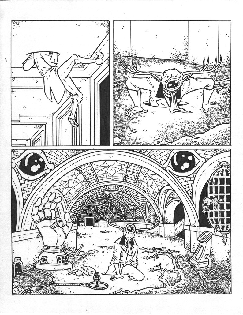 (NOTE: Many pages from Chrome Fetus Studios are composites of different drawings on multiple bits of paper and flotsam - sometimes crudely cobbled together with glue or tape. You may also find pencil marks, scribbled notes and graphite thumbprints. Consider these features as a means of certifying the genuineness of the artwork!)