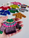Use your leftovers sock yarn to knit a tiny sweater - use them as ornaments, keychains or gift them to your family and friends.