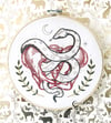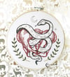 Embroider a magical snake and pelvic bone design that whispers of hidden knowledge. This downloadable PDF pattern features a mesmerizing snake entwined within a pelvis, offering a subtle touch of the occult. Sized perfectly for an 8-inch hoop.