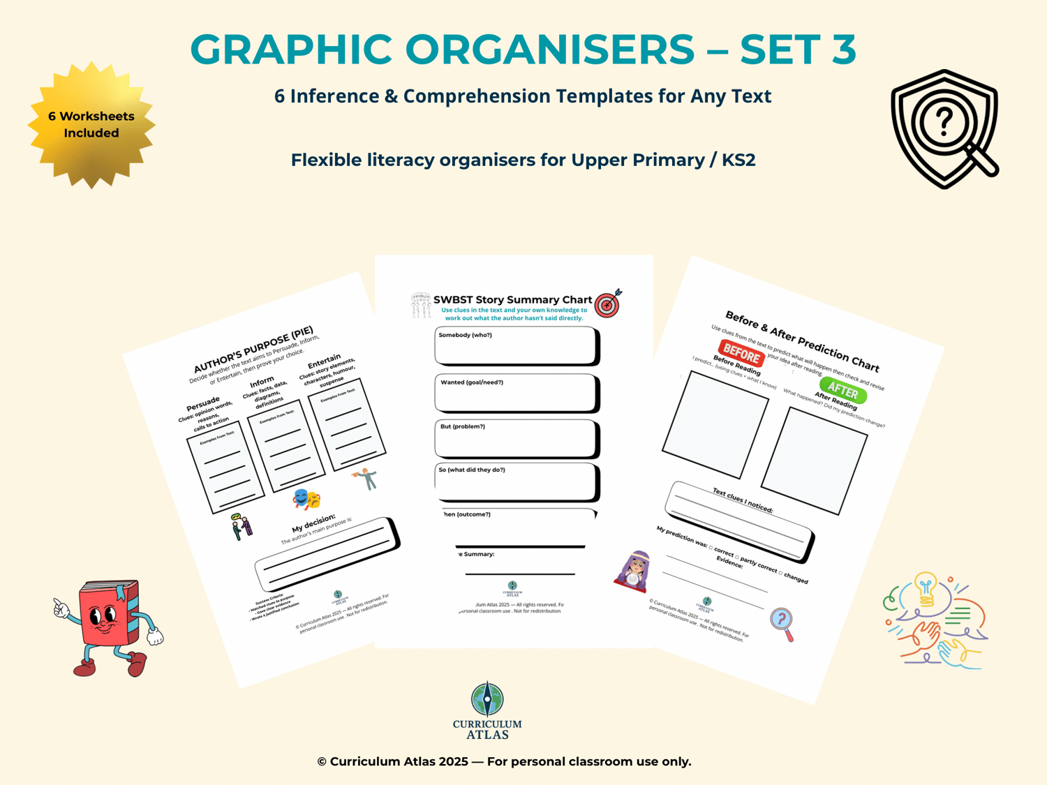 Graphic Organisers – Set 3 | 6 Inference & Comprehension Templates for Any Text