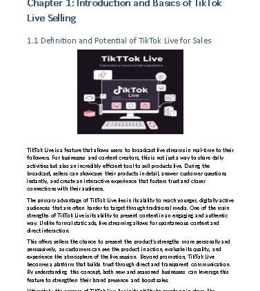 ✅ Step-by-step SOP & Strategy eBook – 15 detailed chapters covering TikTok Live fundamentals, sales psychology, and growth roadmap.