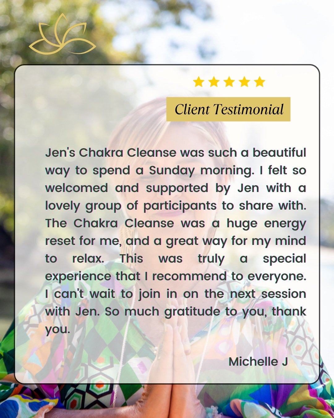 The environment Jen created was loving, supportive, and non-judgmental. It allowed me to reconnect with myself, give gratitude and appreciation to who I truly am, and let go of the stories and limiting beliefs I had carried for so long exhausted from being who i thought evwryone else needed me to be.