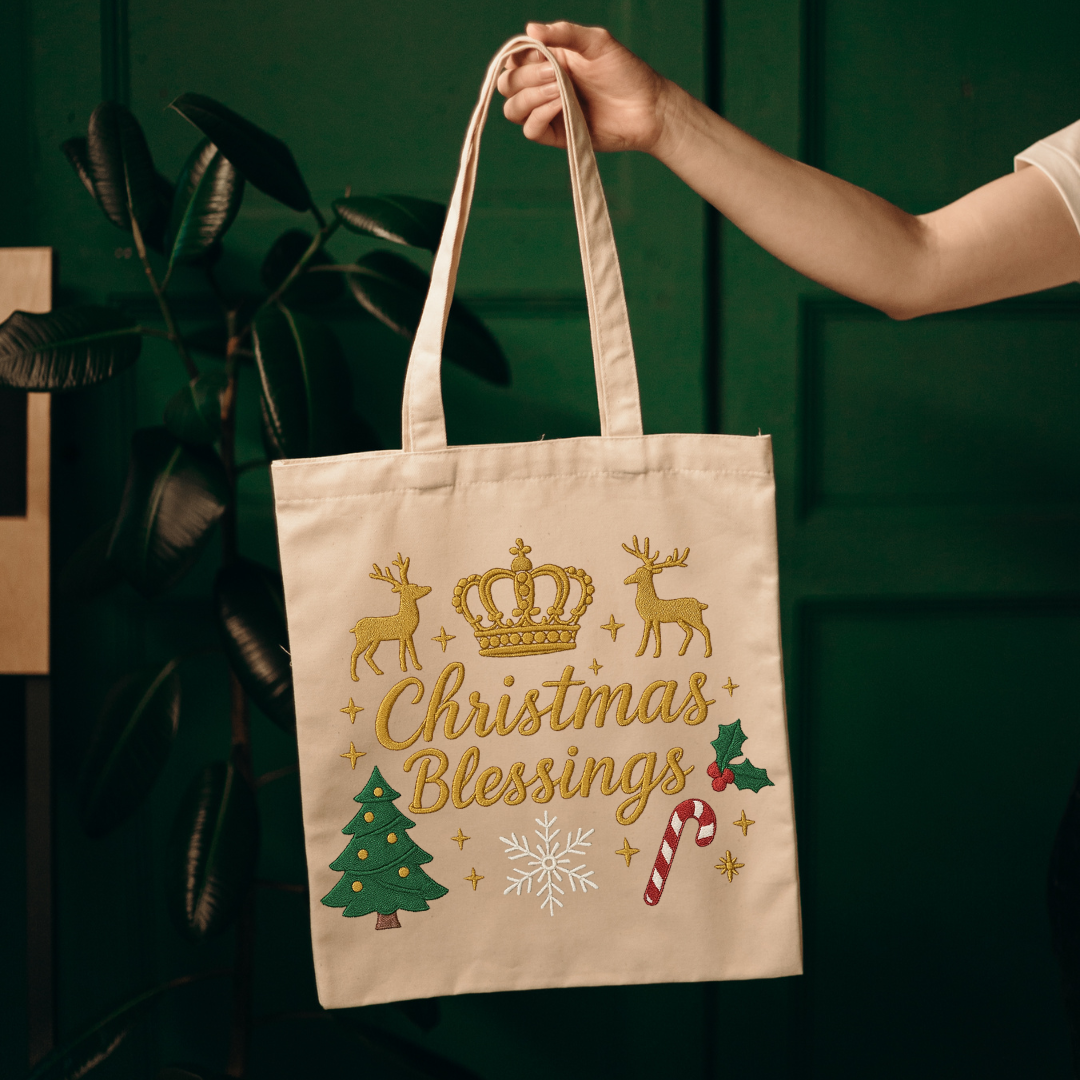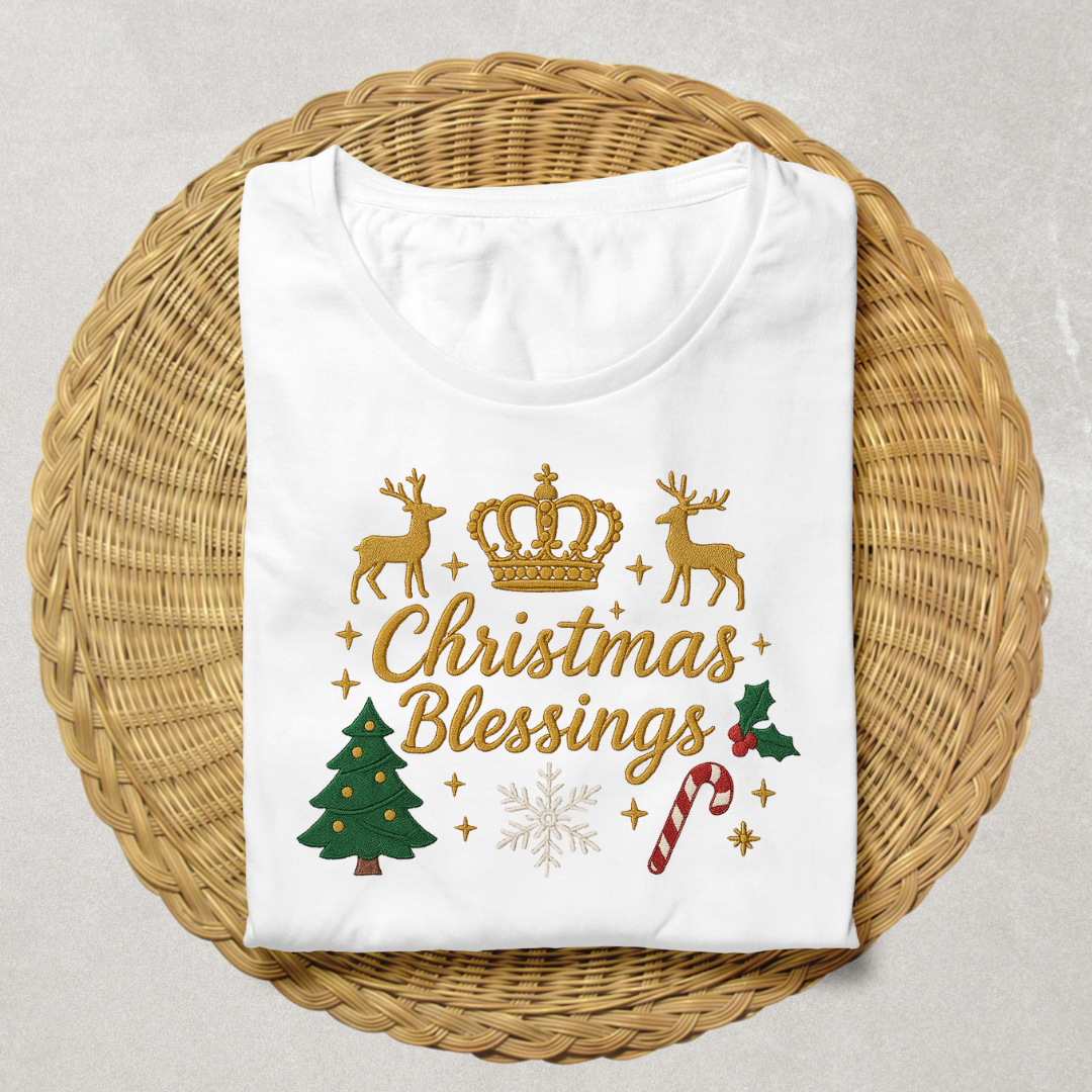 π Christmas Blessings Embroidery Design β Festive Holiday Pattern with Reindeer, Crown, Tree & Candy Cane β¨π¦π