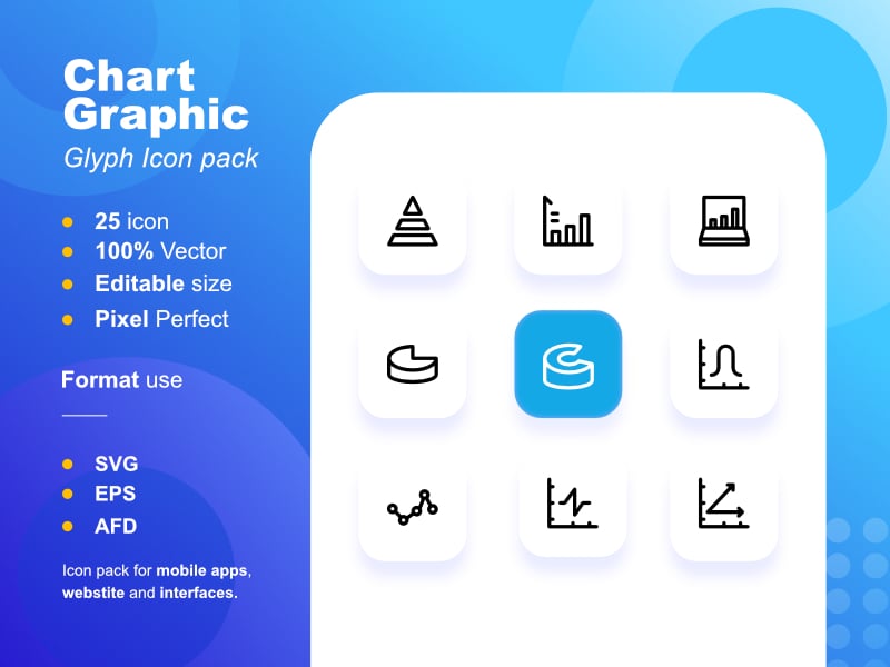 Chart icon pack comprises 25 stylish icons.