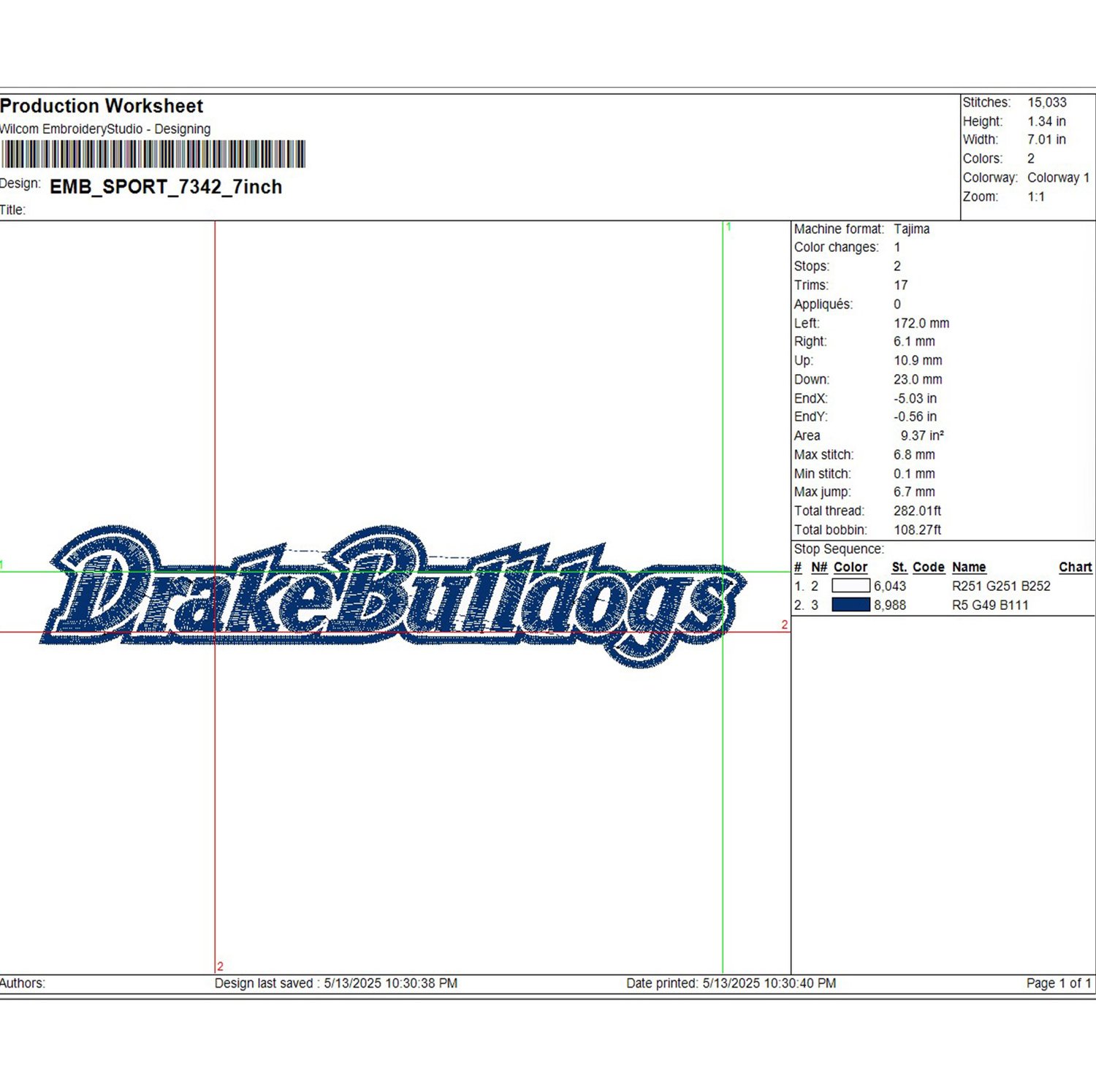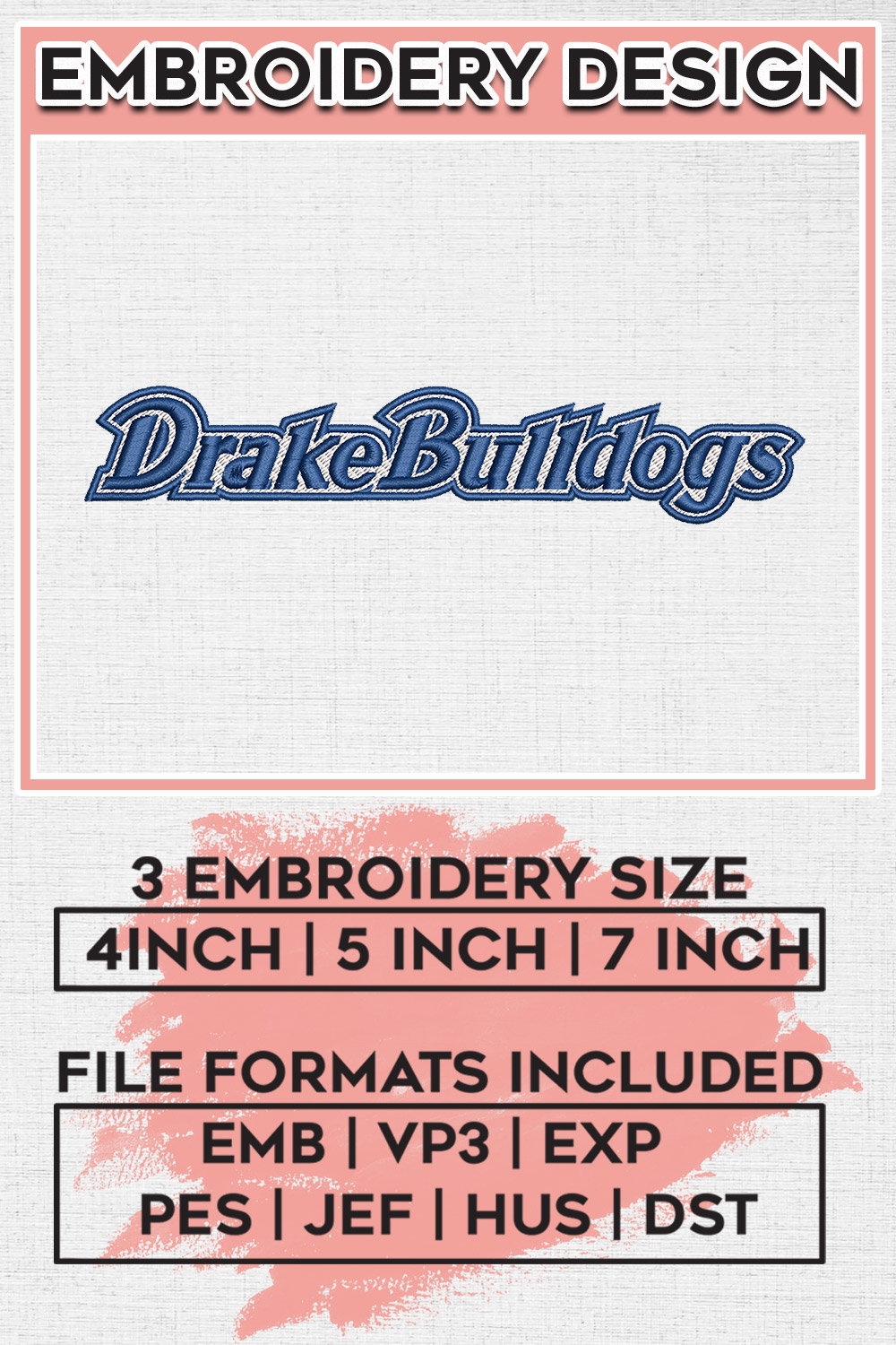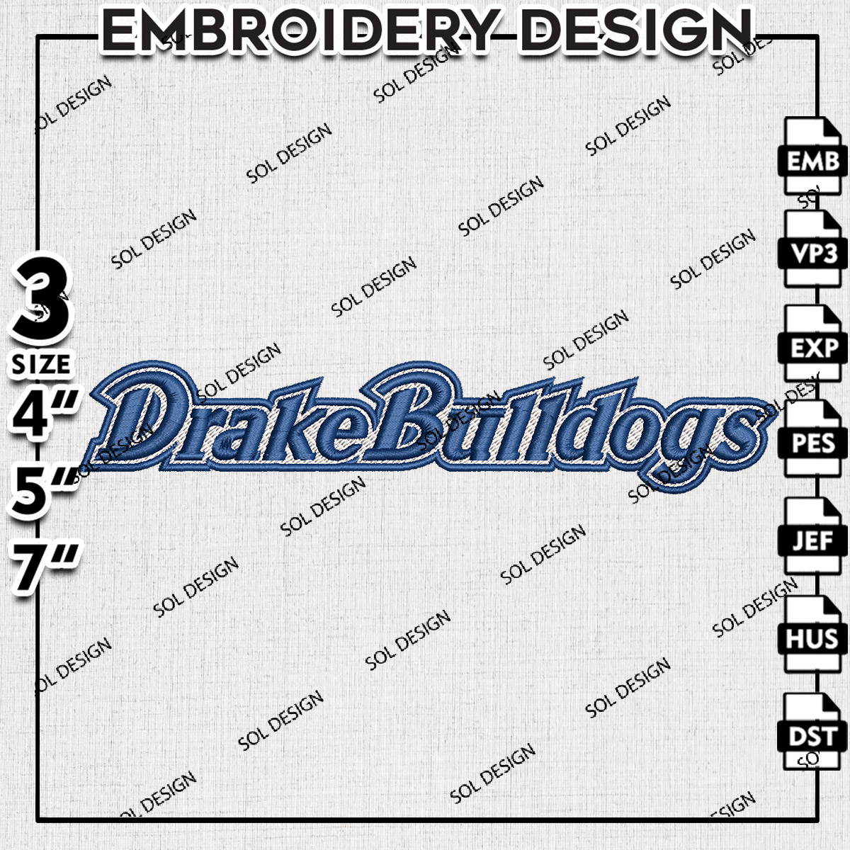 NCAA Drake Bulldogs Football Team Word Logo Embroidery Designs, NCAA Drake Bulldogs Machine Embroidery Files, NCAA Logo embroidery designs, Ncaa Drake Logo, Digital Download