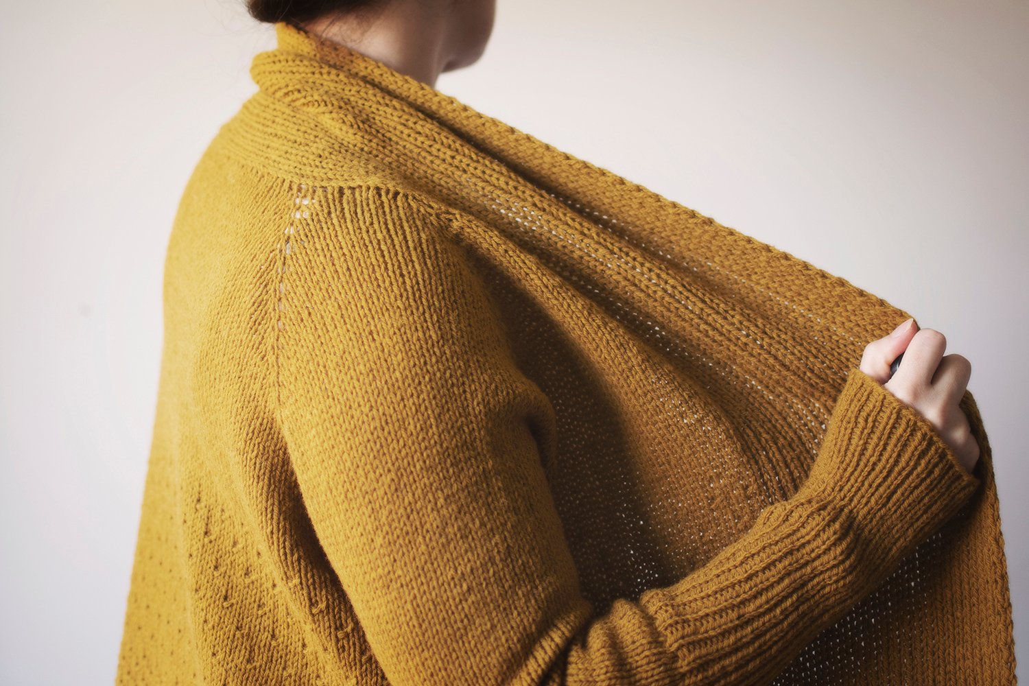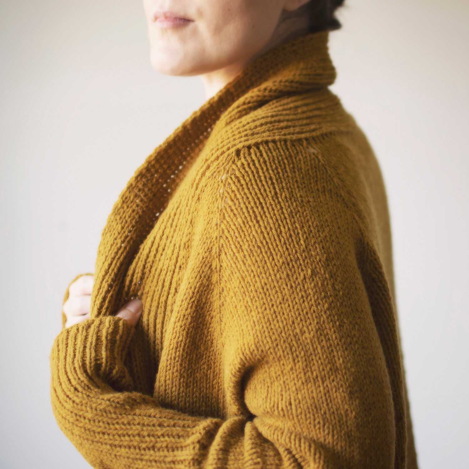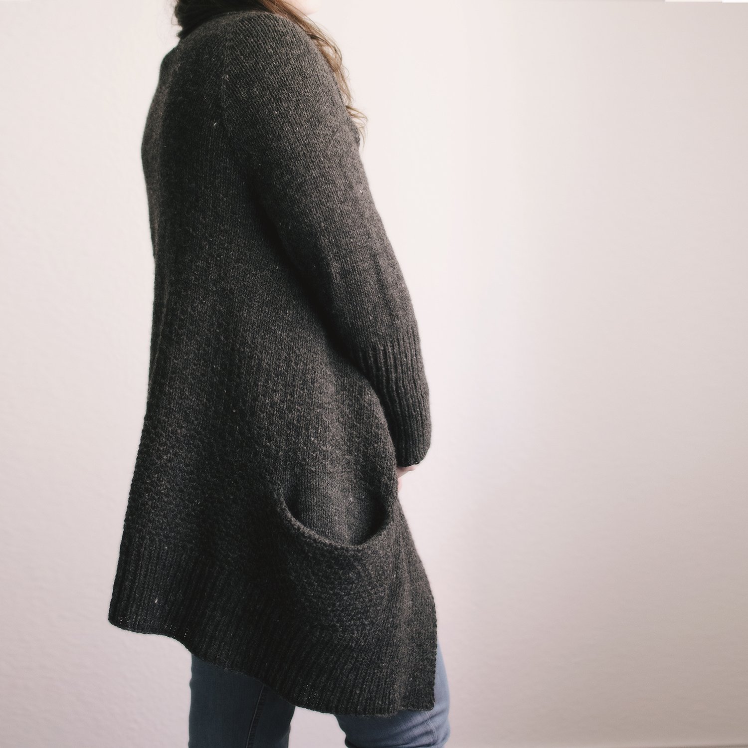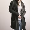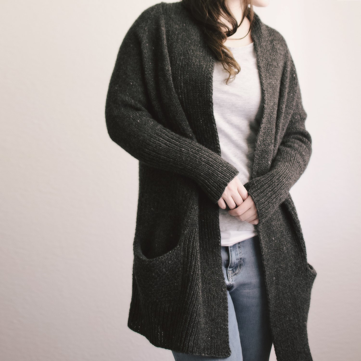 The cardigan is designed to be worn with plenty of ease.