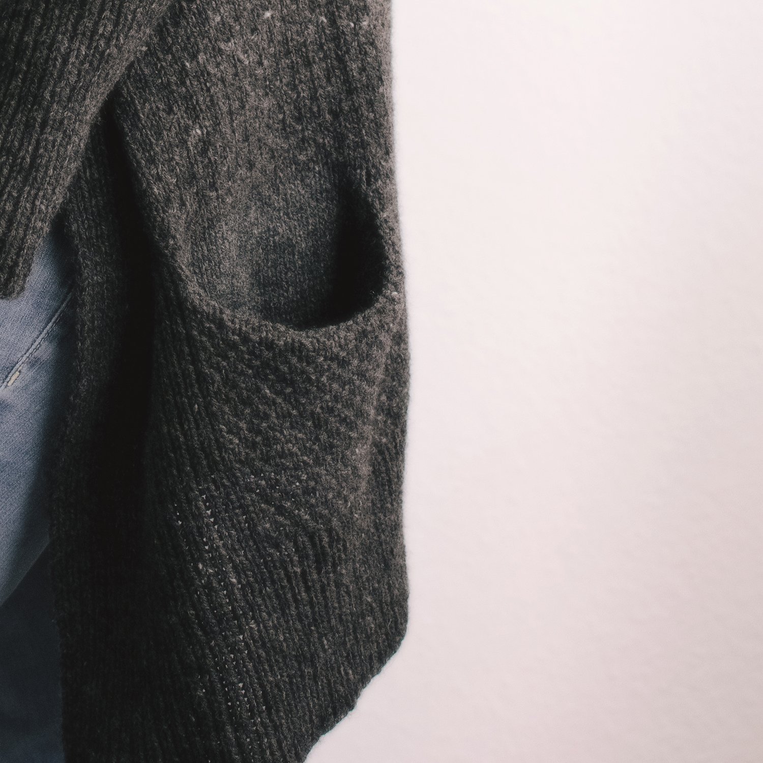 6 (6, 7, 7, 7) (8, 9, 9, 10) skeins of Gilliatt with pockets.